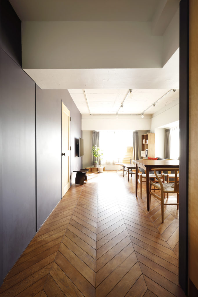 玄関入ってすぐリビングの家おしゃれなレイアウト実例、目隠しのアイディアを紹介中古マンション・戸建てリノベーション&リフォーム。