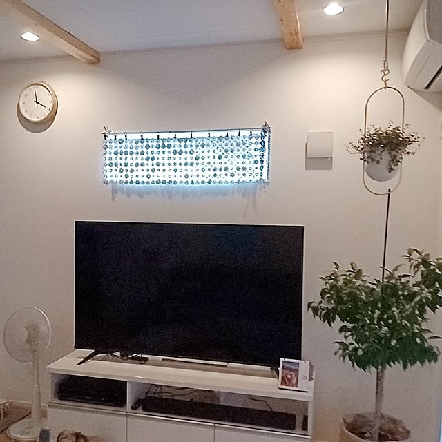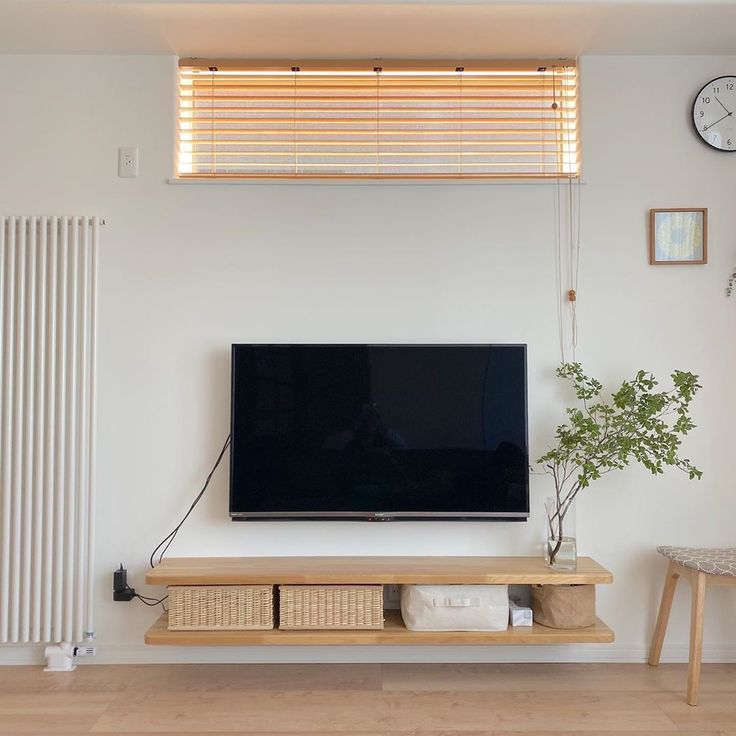 h i k a r i ❁ on Instagram: “❁❁❁ よく質問をいただく テレビ上のFIX窓のサイズꗯ おおよそですが、 縦 50cm 横 160cm です𓂃.∘ 大きそうですが眩しくないですか? とも聞かれますが、、方角的にも隣の家もあるので ”。
