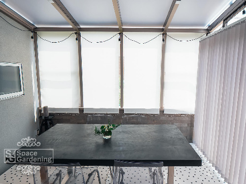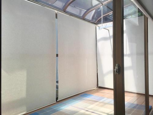 サンルームに取り付けロールスクリーン- 島内たたみ店。