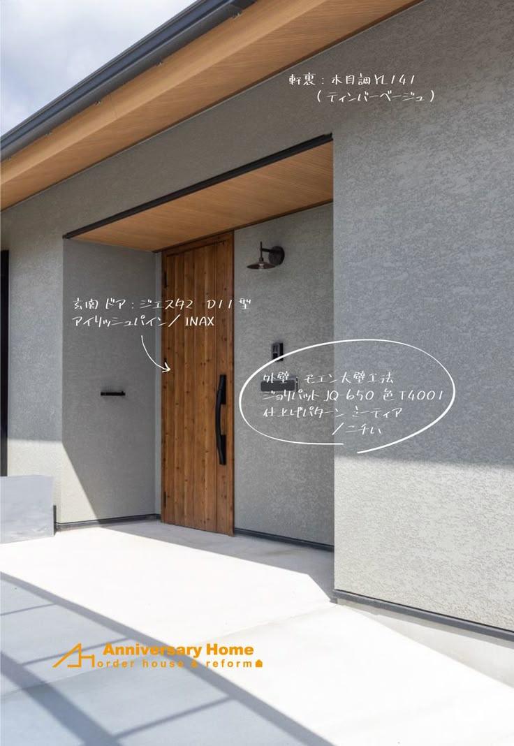 SUUMOグレーの外観に木目調をプラス。家事ラク動線が嬉しい、どこにいても家族とつながる平屋の住まい - 夢広 の建築実例詳細注文住宅。