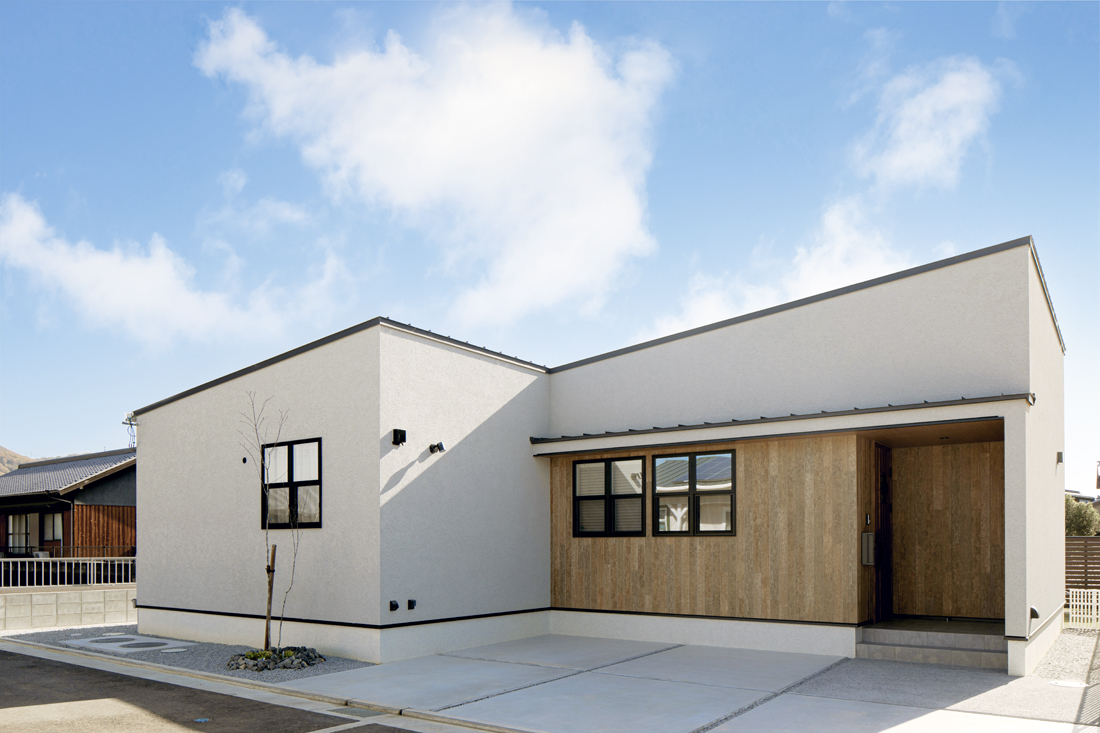 モノトーン×木のぬくもりのクールモダンな平屋サカエ住宅。