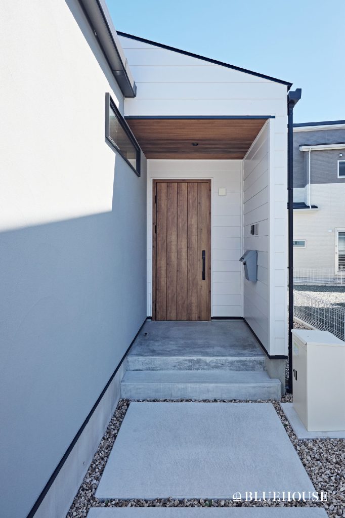ホワイトとブルーグレーの2層の外壁のシンプルな外観 - 事例写真「家族の会話が弾む北欧風の家」注文住宅のハウスネットギャラリ。