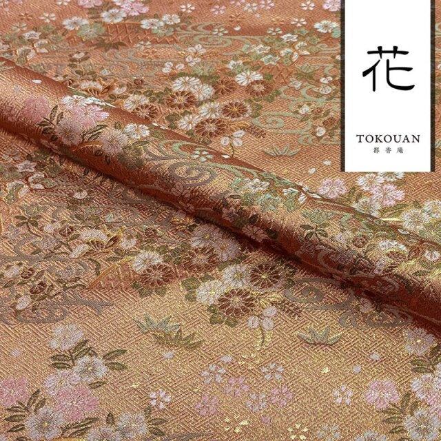 ❤特別価格❤シルク 絹 生地 茶色 金襴生地販売 紗綾形地観世水。