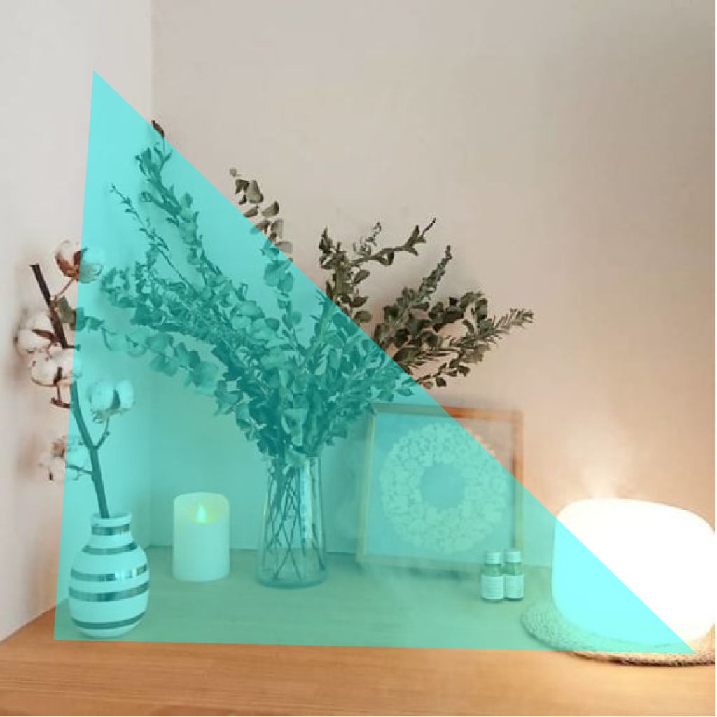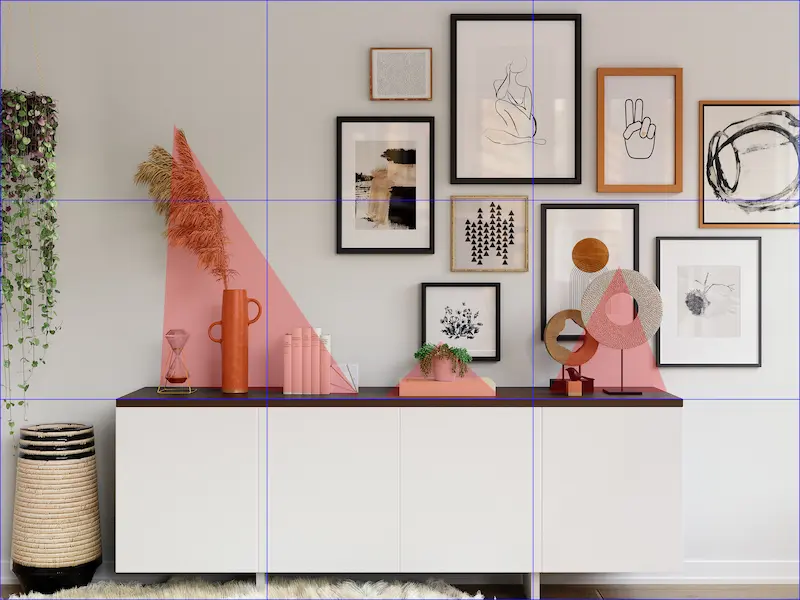 北欧インテリア相談 壁づかい編> 「三角構図を心がける」 インテリアの世界ではよく「三角構図」を使います。 アイテム同士の一番外側の輪郭が三角形になるようにアイテムを配置することで、まとまりのある印象になります。正三角形でも二等辺三角形でも、三角形であれば。