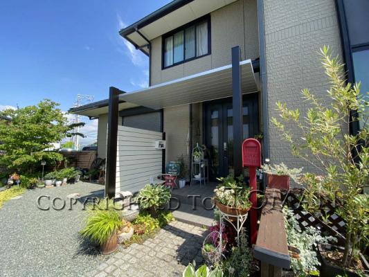 雨の日も、日差しの強い日も安心。玄関にテラス屋根を!三重県で外構工事・お庭作り・エクステリア人気店はえす・あーと。