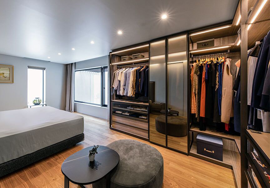 ไอเดียจัดห้องนอนด้วย Walk-in Closet สไตล์มินิมอล。