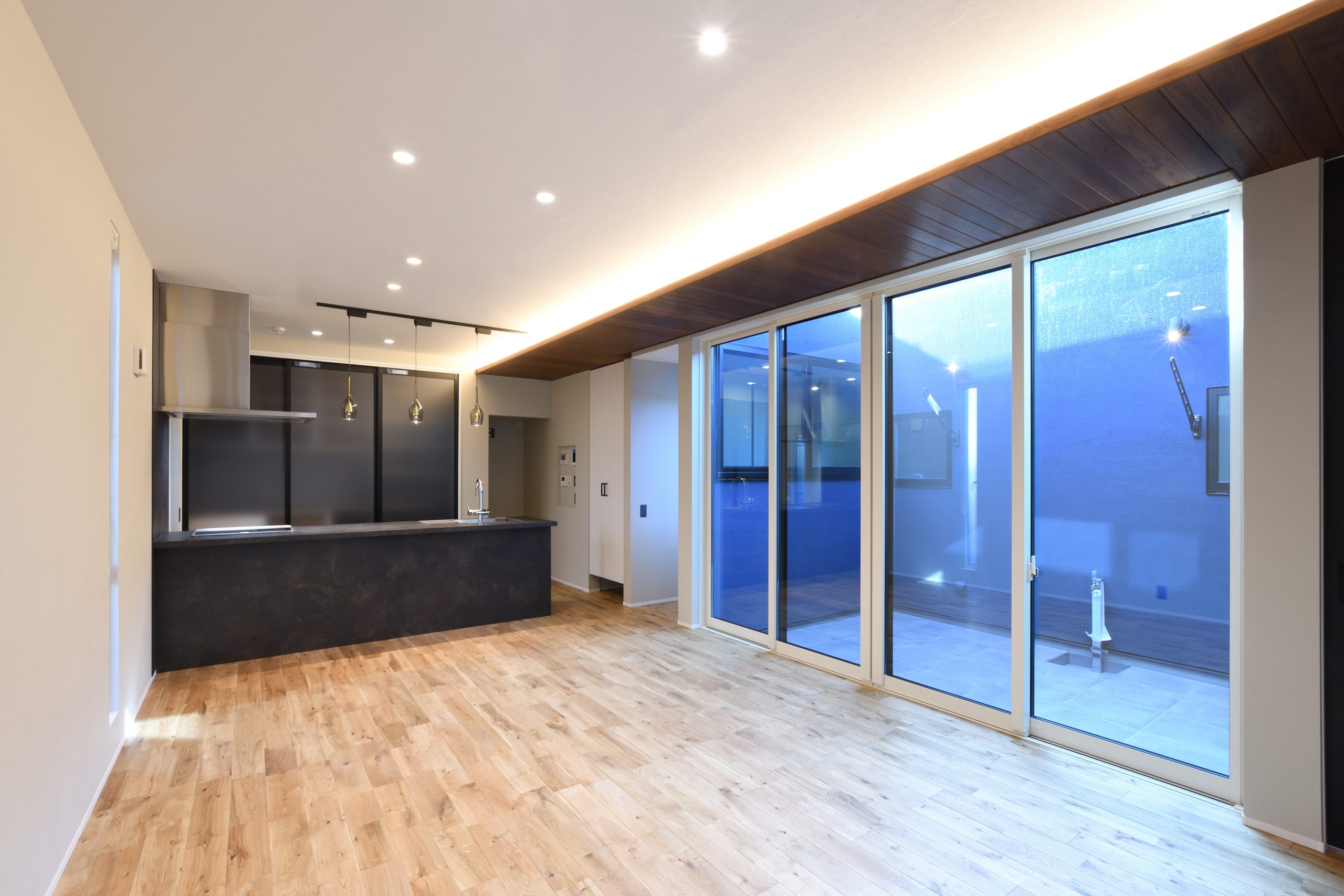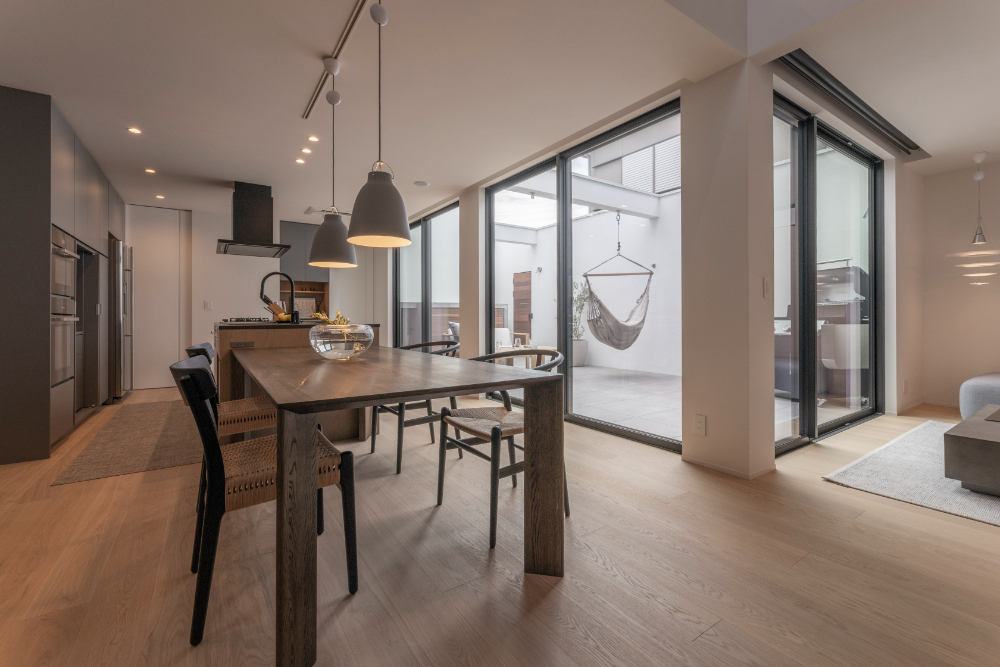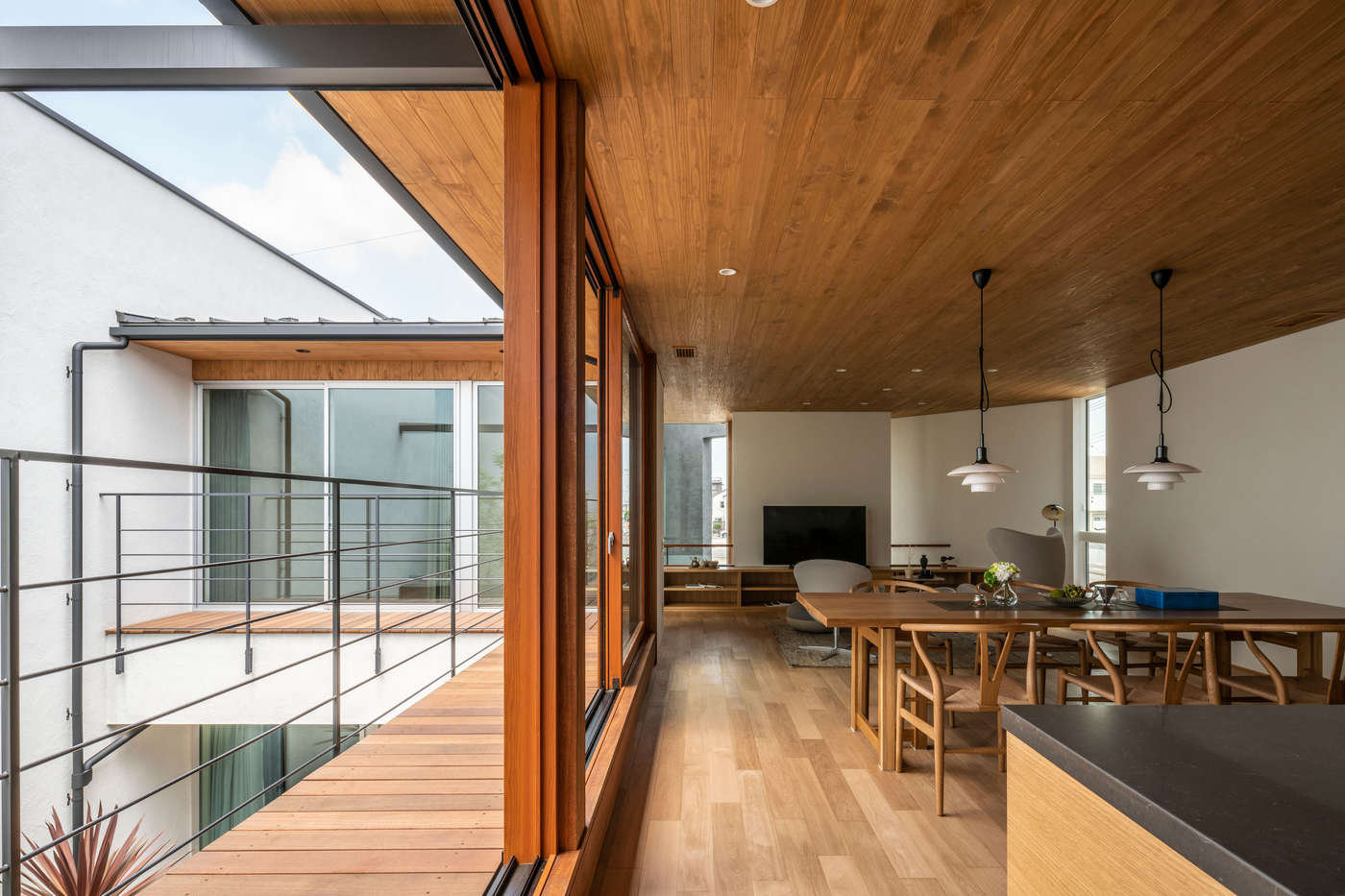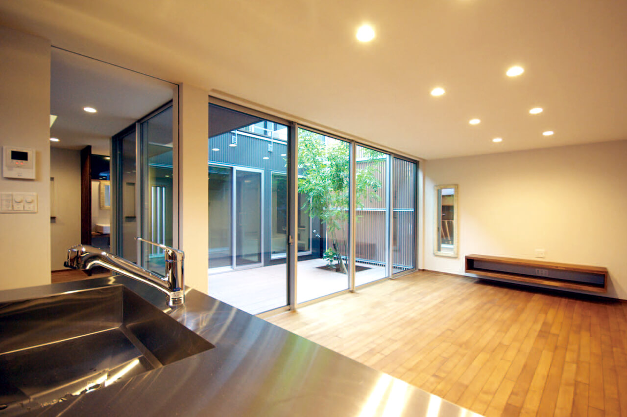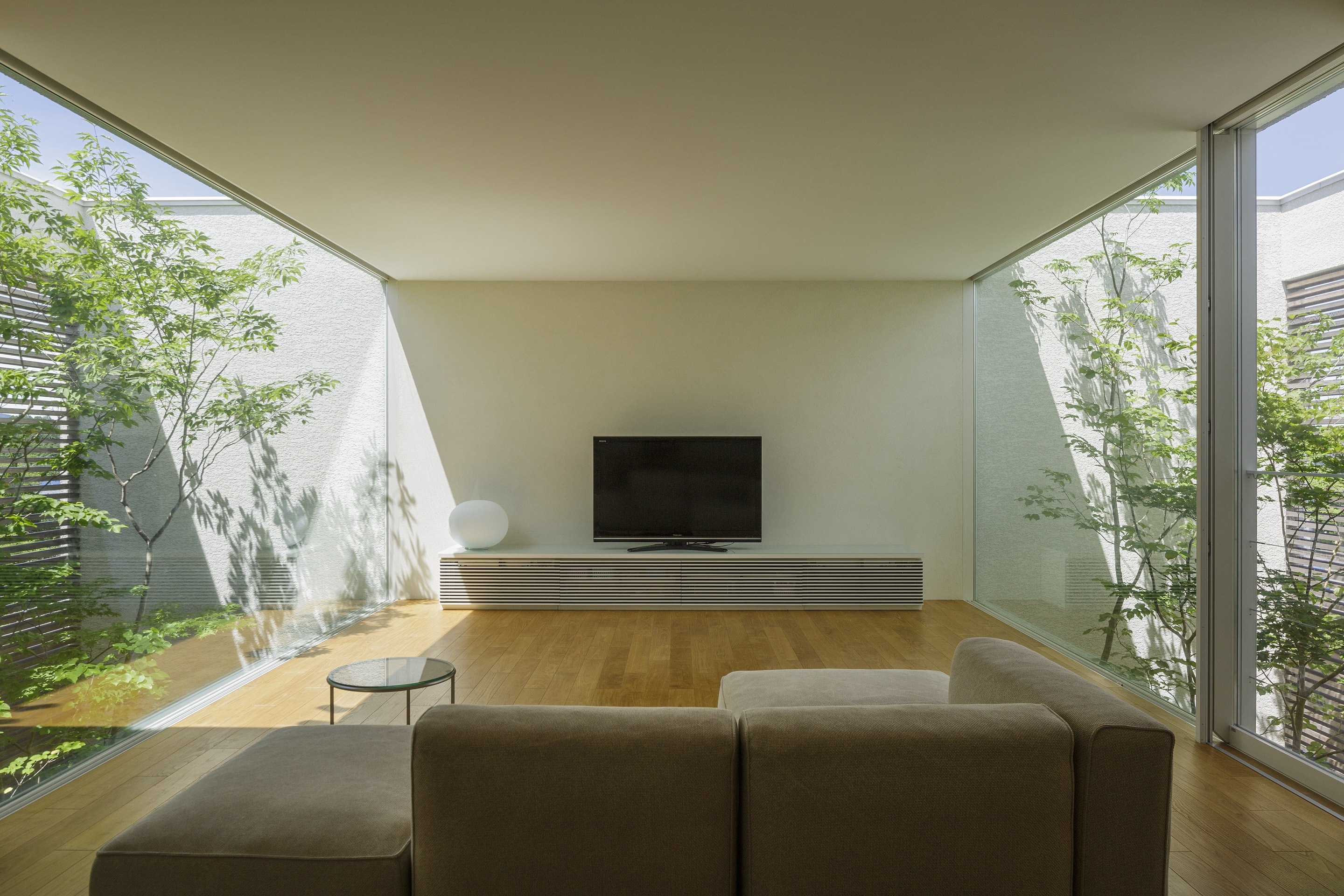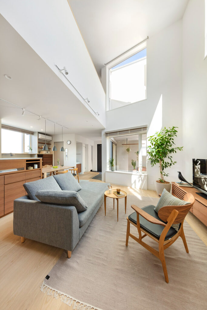 都心の住宅街にあってもカーテンのいらないリビング住まいの事例ozone家design。