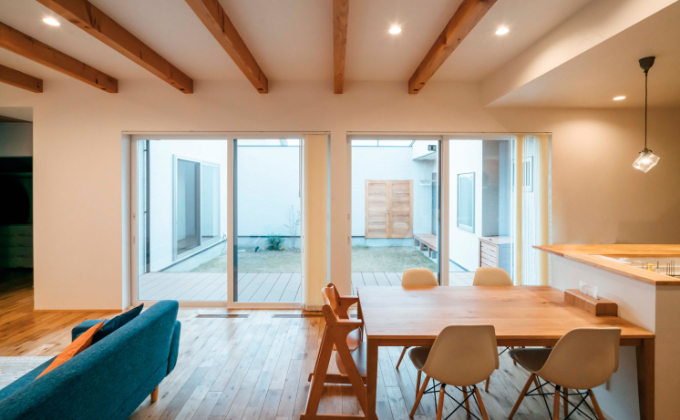 住宅街に建つカーテンのいらない中庭のある家 群馬全域対応 前橋・高崎・渋川・太田・伊勢崎 埼玉・栃木 一部 の注文住宅・天然・自然素材のデザイン注文住宅ならラスタ工務店。