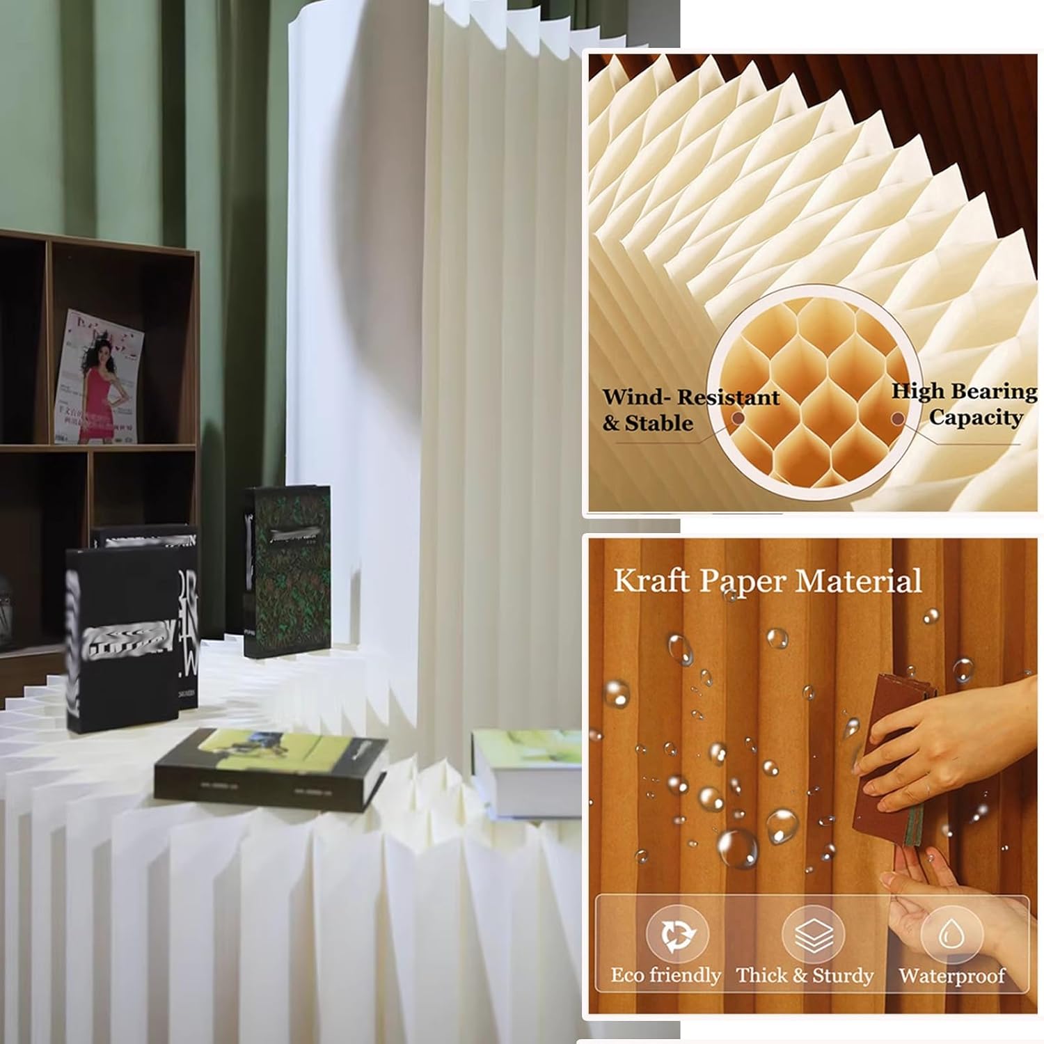 モダンな間仕切りパーティション収納ディスプレイラック 美容室やネイルサロン用 引き込み式ペーパーウォール 装飾背景壁付き 5x1.6 ぼん家具パーティション 間仕切り 三連 おしゃれ パーテーション オフィス サロン 部屋 美容室 飲食店 仕切り 折り畳み 背景。