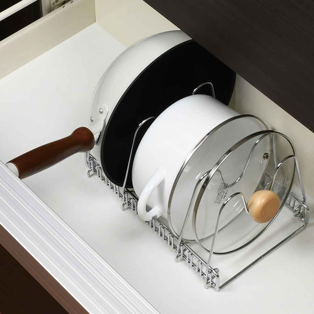 鍋フライパン収納 キッチン コーナー鍋収納 鍋キッチン収納 蓋食器棚収納 簡単に洗える 組み立てが簡単 多機能収納小物 鍋蓋 調味料 鍋フライパンスタンドトトノ 引き出し用 鍋フライパンスタンドR仕切り付き フライパンスタンド フライパンラック 鍋蓋スタンド 鍋。