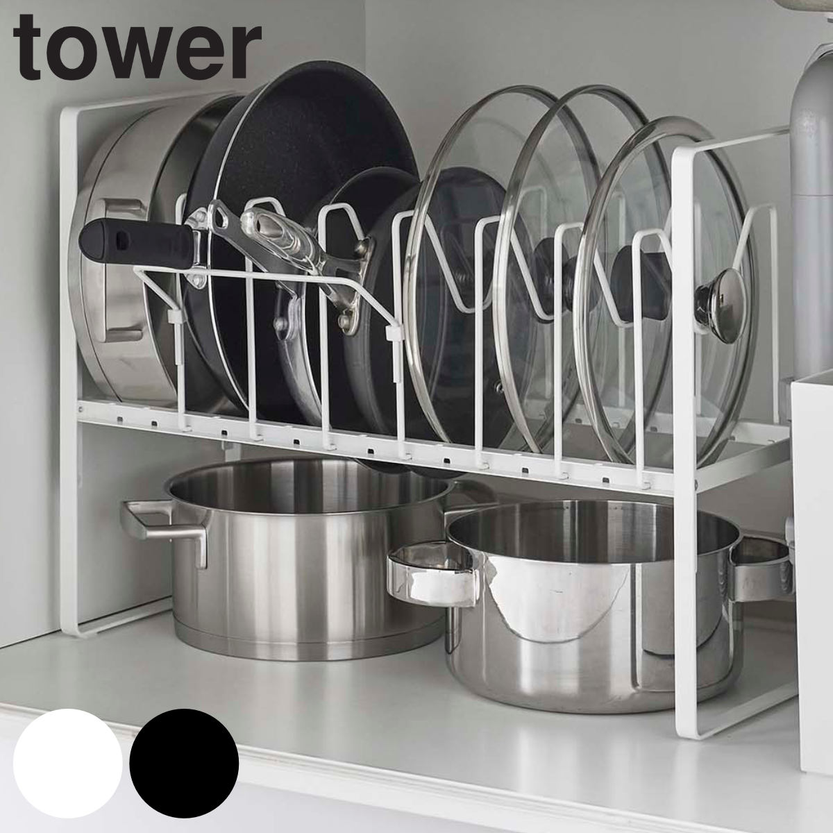 シンク下伸縮鍋蓋収納バーセット タワー山崎実業 tower シンク下 伸縮 ラック 鍋蓋 スタンド 収納 引き出し 収納ラックシンク下スライド 便利 コンロ下 キッチン下 おしゃれ yamazaki モノトーン ホワイト ブラック 5075 5076 ポイント5倍 送料無料公式。
