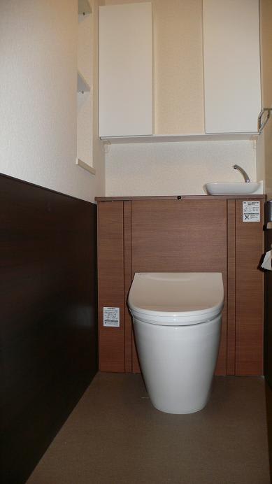 木目の腰壁がキレイな落ちついたトイレ』 トイレのリフォーム事例 11650- 価格.com。