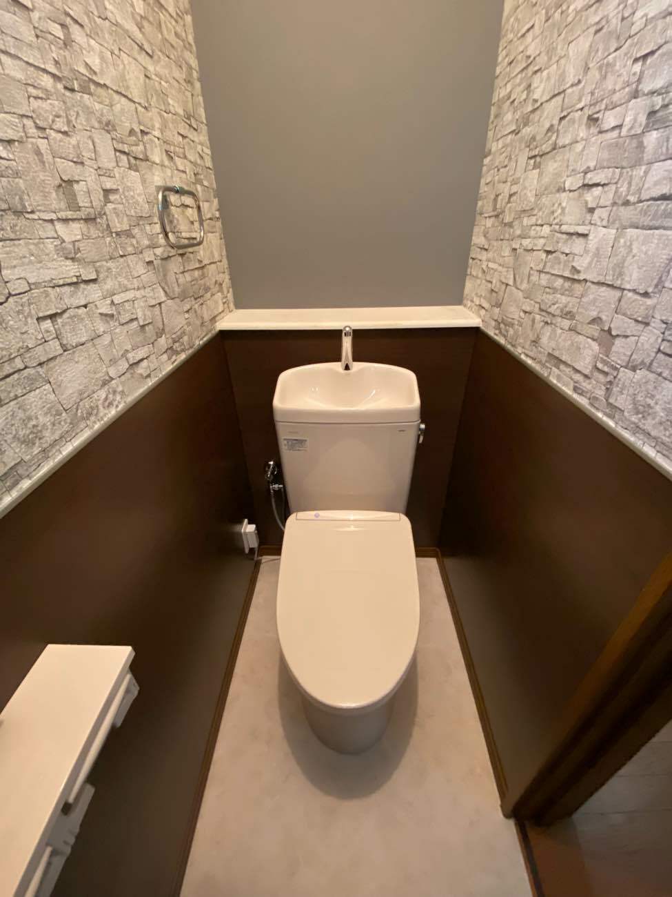 トイレ改修工事 タイル張りからモダンなクロス張りへリフォーム事例 施工例 福知山市のリフォーム専門店住まいの困りごとなら何でもヨネダリフォームに相談。
