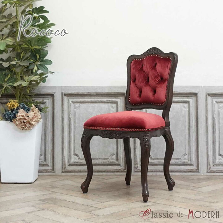 輸入家具 アンティーク 椅子 チェア アンティーク ロココ ダイニングチェア ロココ調家具 プリンセス 姫系 家具 おしゃれ かわいい フランスイタリア デザイナーズ ホテル レストラン 美容室 エステサロン 食卓 椅子 いす イス 猫足 猫脚 ベルベット 赤 レッド 6085-5F410B。