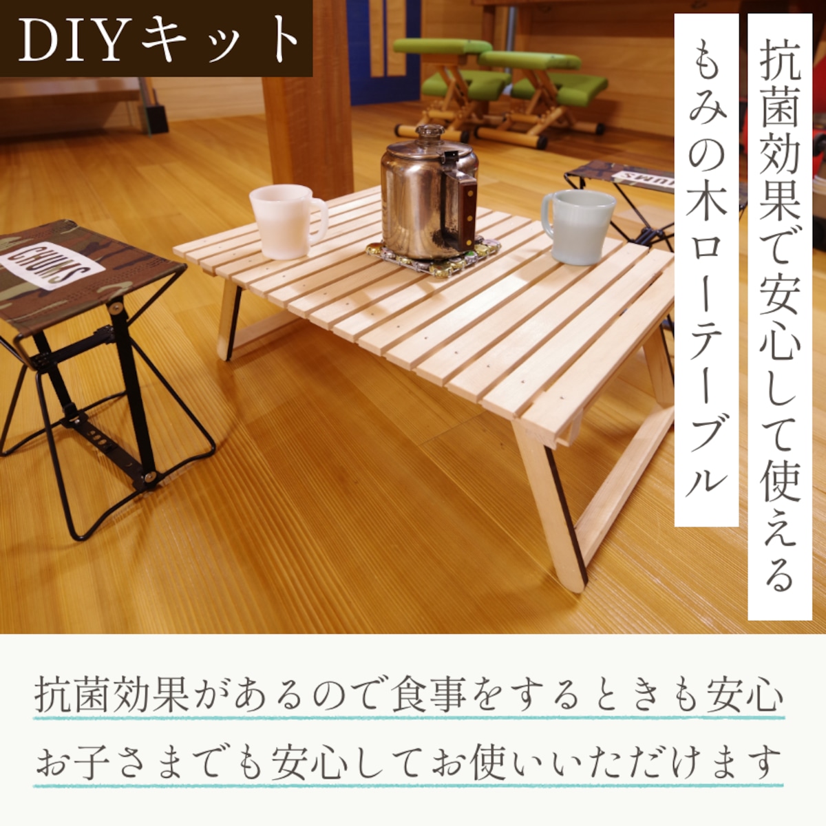 手作り木製テーブル 折りたたみローテーブル もみの木ローテーブル 折り畳みテーブル DIYキット。