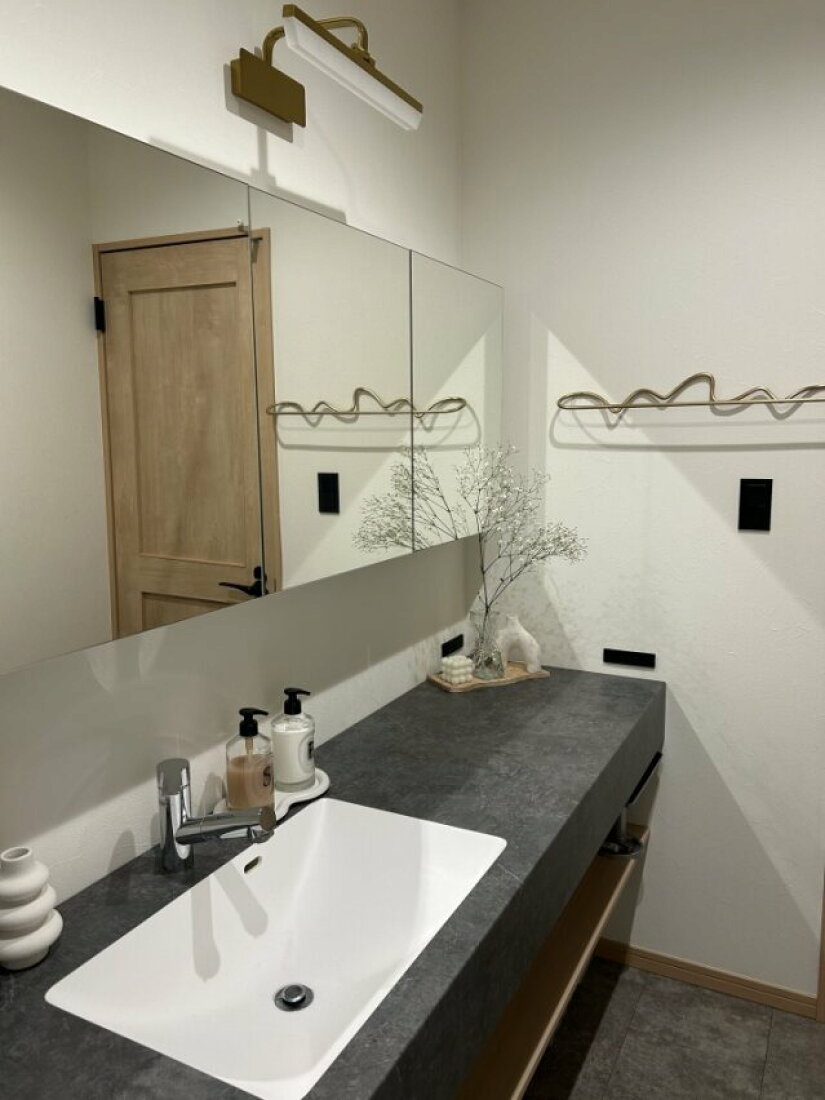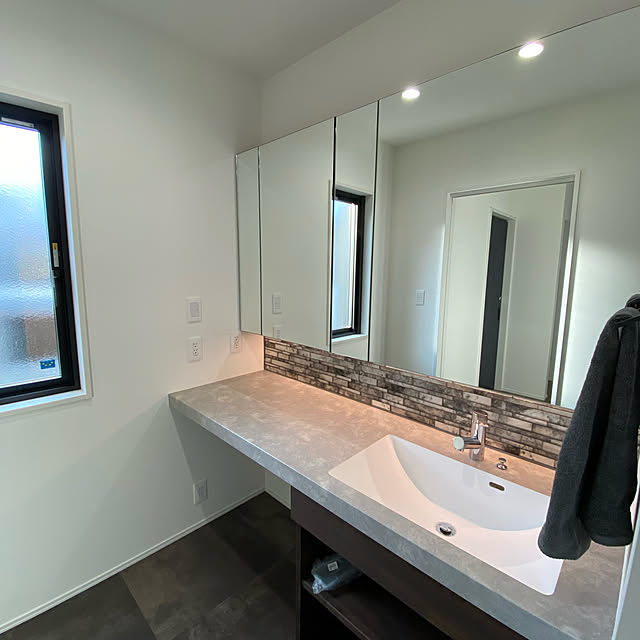 バス トイレ パウダールーム 洗面台 スタイリッシュカウンター アイカ工業 などのインテリア実例 - 2022-04-28 19:55:46RoomClip ルームクリップ。