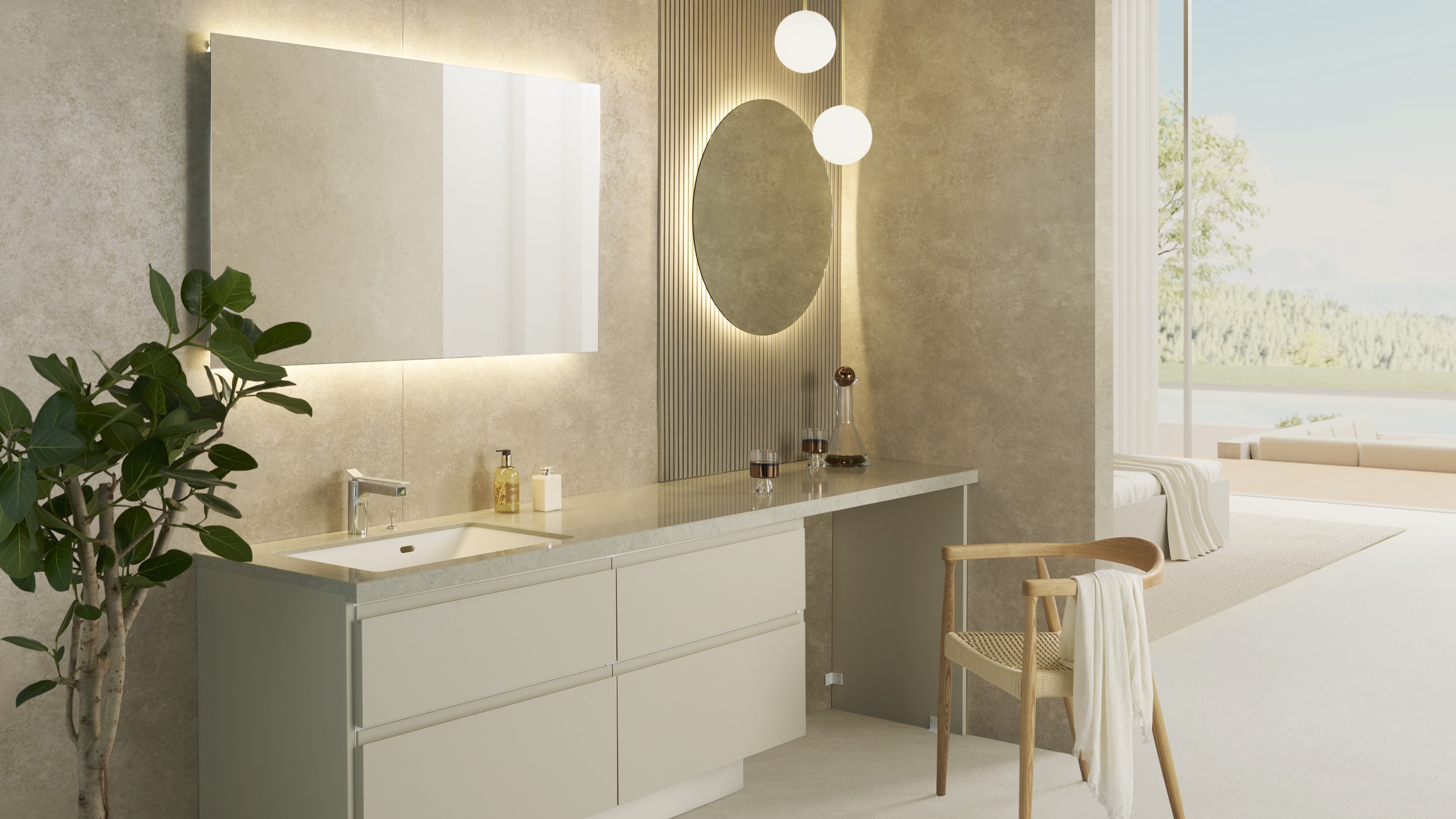 ホテルライクな造作洗面化粧台dewstyle デュースタイル。