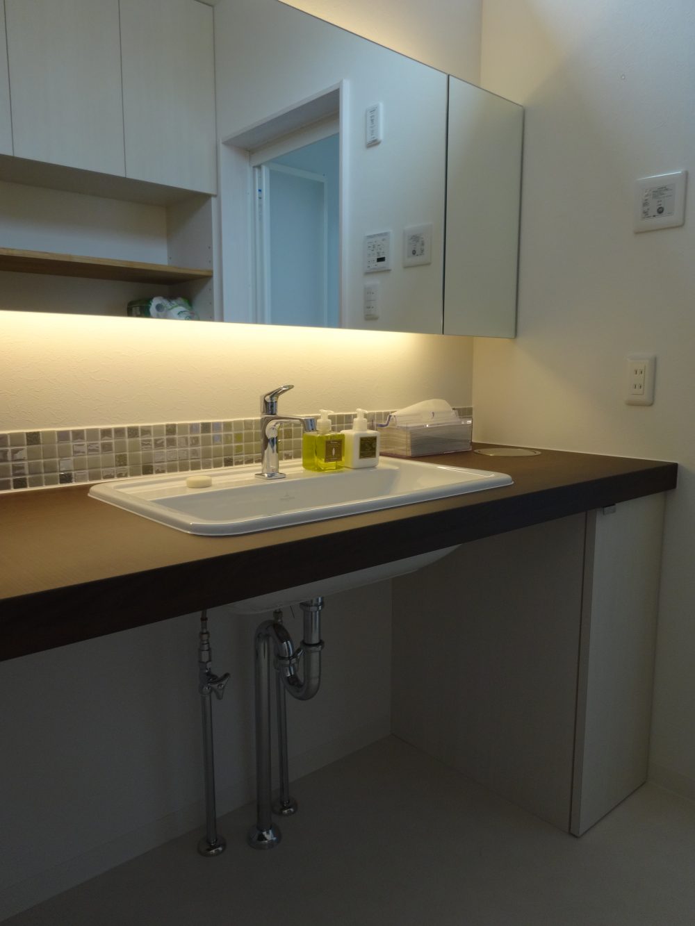施工事例 造作洗面台間接照明 ホテルライク タイル千葉県我孫子市日建ホーム。