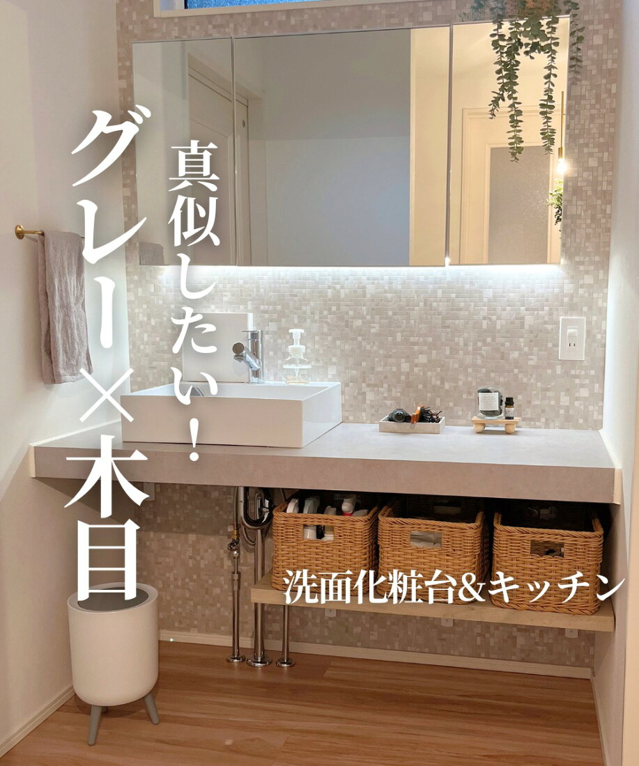 ホテルライクな オシャレな洗面台🧼𓈒𓂂𓏸◌ 造作洗面台みたいにオーダーできるのに低コスト✨ さらに、お手入れも楽ちん♪ 扉はグレーをセレクト☑︎ 大きさも、カラーも、素材もこだわりをつめこみました👏⁎✴︎ @fukukobo◁他の投稿はコチラ。