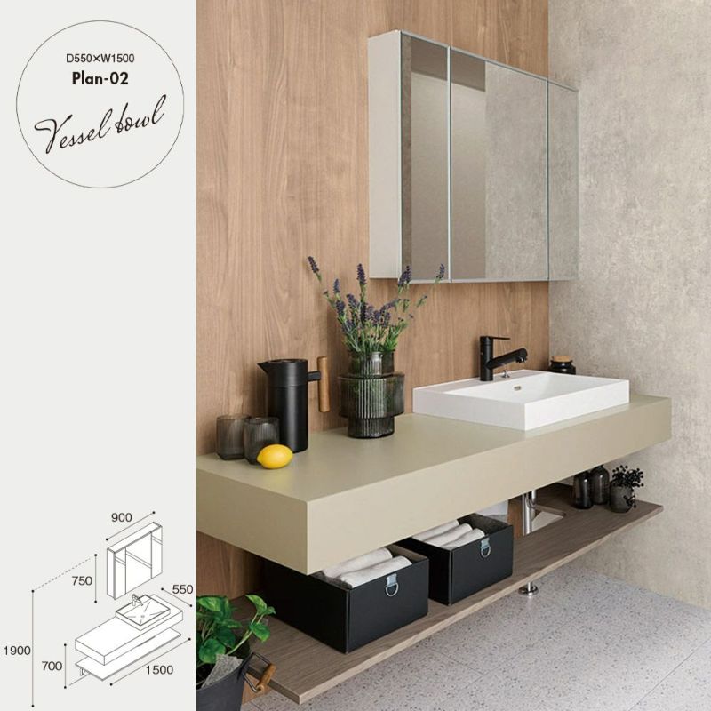 アイカ工業 スマートサニタリーU Plan-02 ベッセルボウル 間口1500mm 奥行550mm ボウル カウンター 棚板水栓建材・住宅資材の公式通販LDK plus。