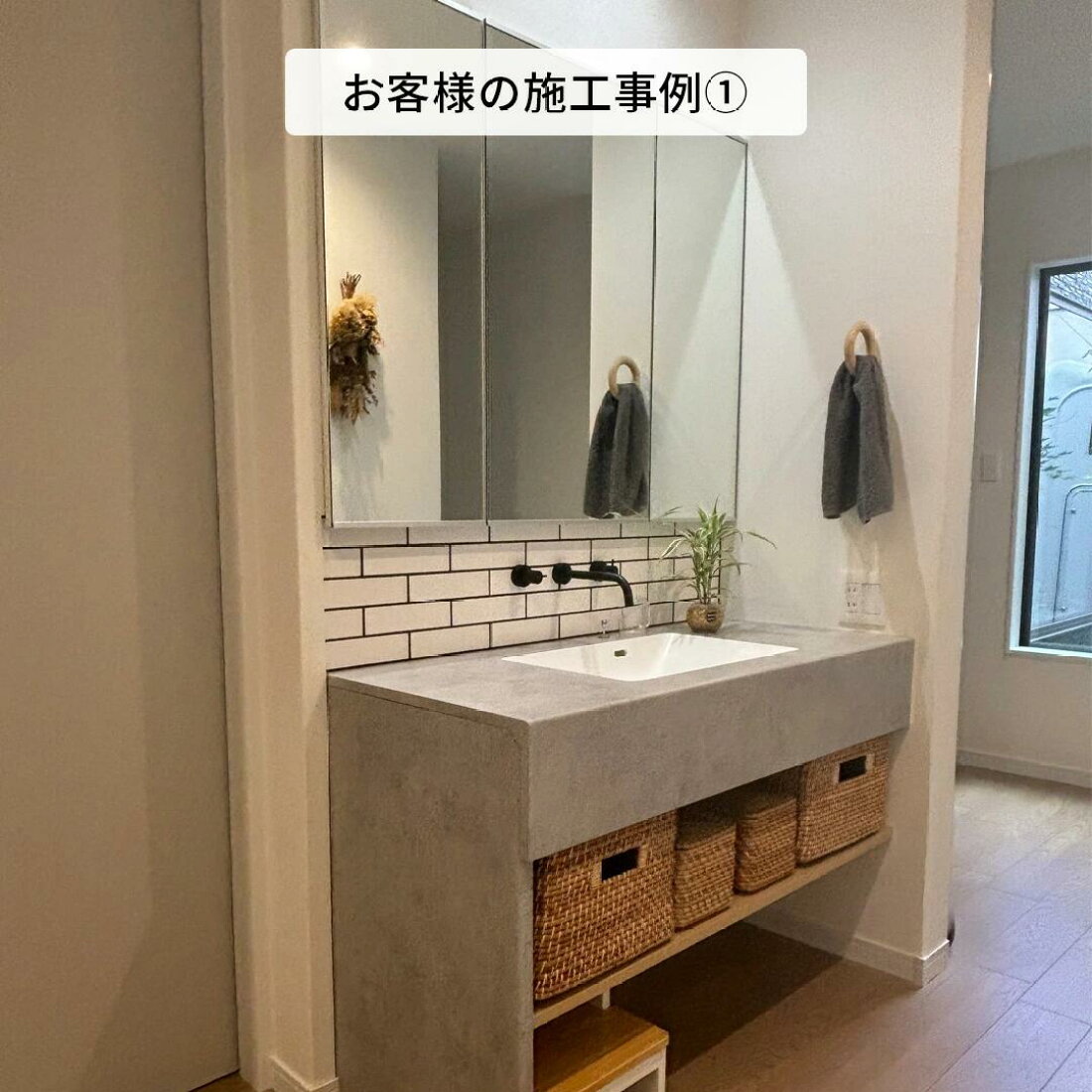こちらはお引渡しいただいたお客様邸です! ホテルライクでモノトーンの洗面所です✨ 非日常的なデザインで日常を特別なものに🥂DEWAHOMEデワホーム今日をつくる山形ヤマガタやまがたぐらむ新築リフォーム不動産洗面所サニタリーアイカ工業。