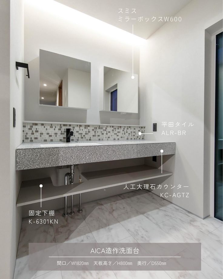 MIRAISMの家洗面台 アイカスタイリッシュカウンター サンワカンパニー モザイクタイル 洗面収納 リゾートハウス ホテルライク ホテルライク な家 ホテルライクな暮らし 広島工務店 広島注文住宅 miraism。
