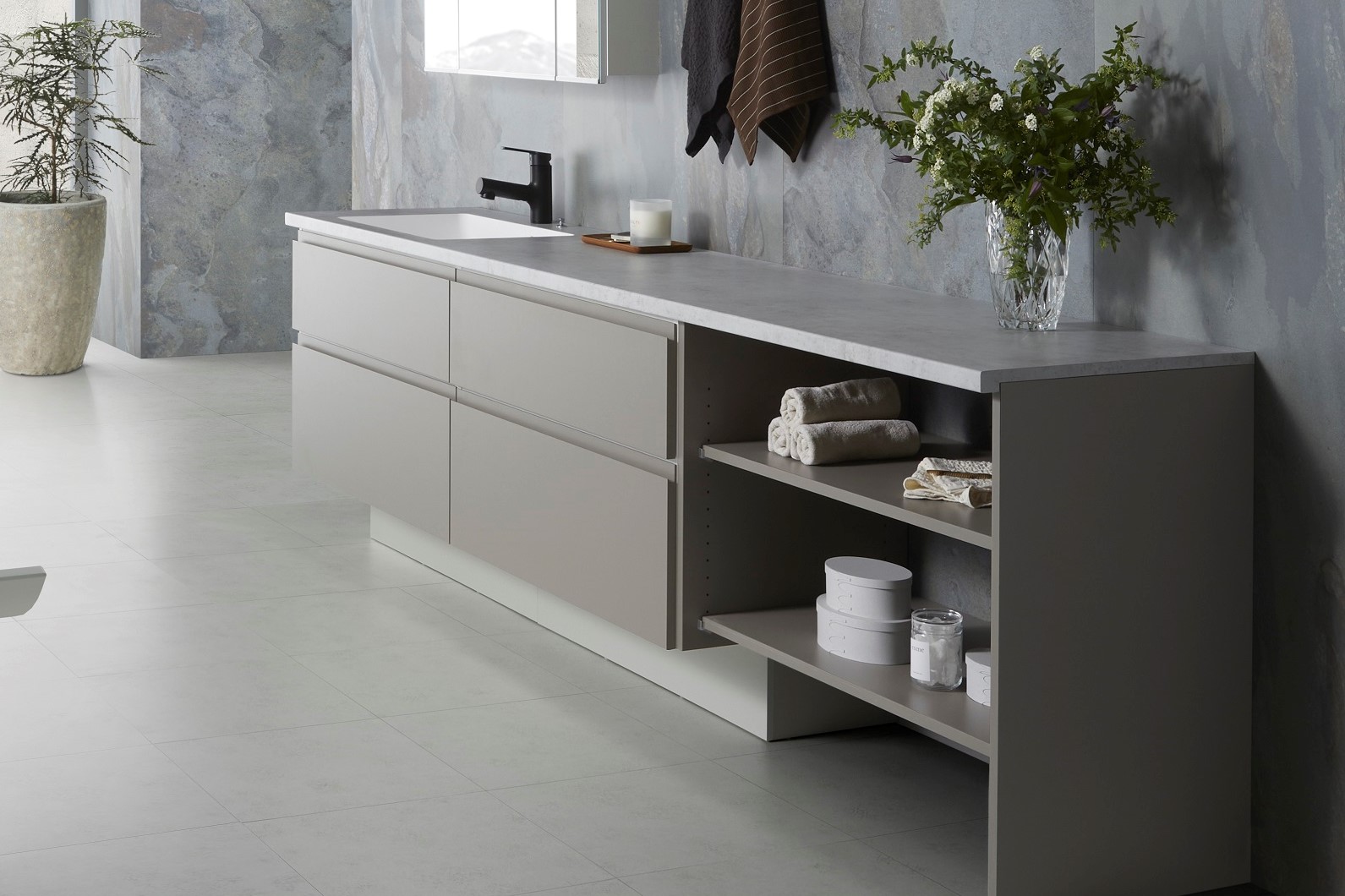 ホテルのような雰囲気の洗⾯に TokushimaK様邸洗面化粧台:スマートサニタリーU カウンター : TJ-10239K 棚板 :JC-533K . 設計 : 株式会社はなおか ‥‥‥‥‥‥‥‥‥‥‥‥‥‥‥‥‥‥‥‥‥‥‥ FIND a “FACE”, CREATE a“SPACE”. “ 表情” を見つける、“ 空間” を創る。