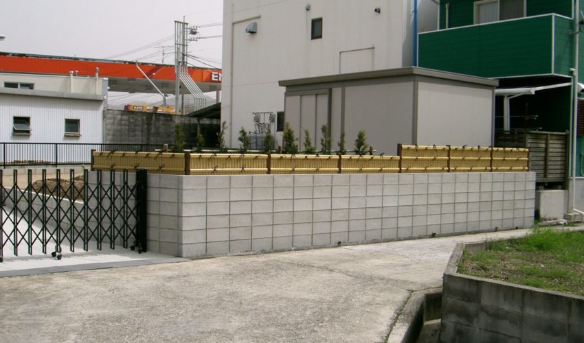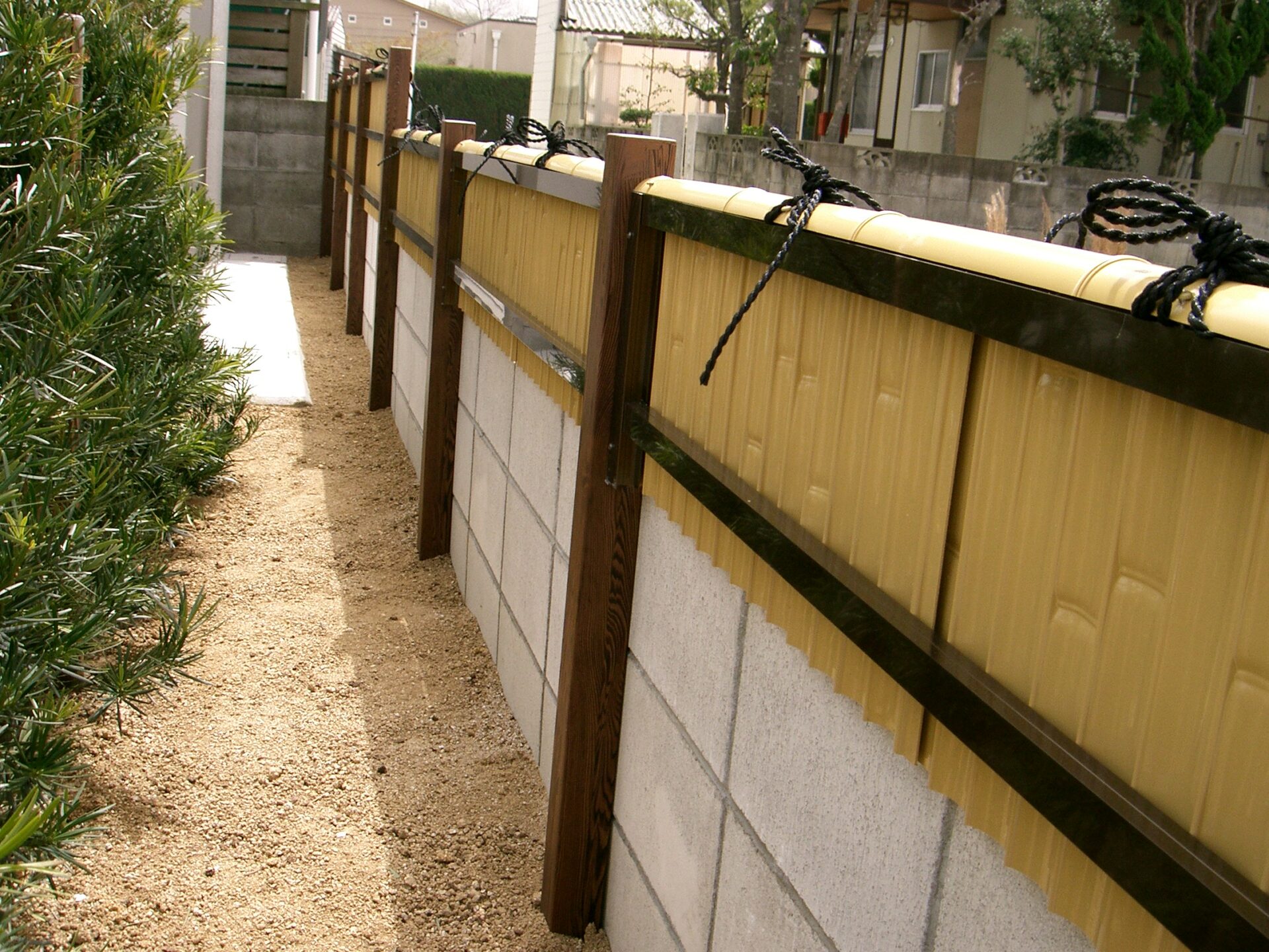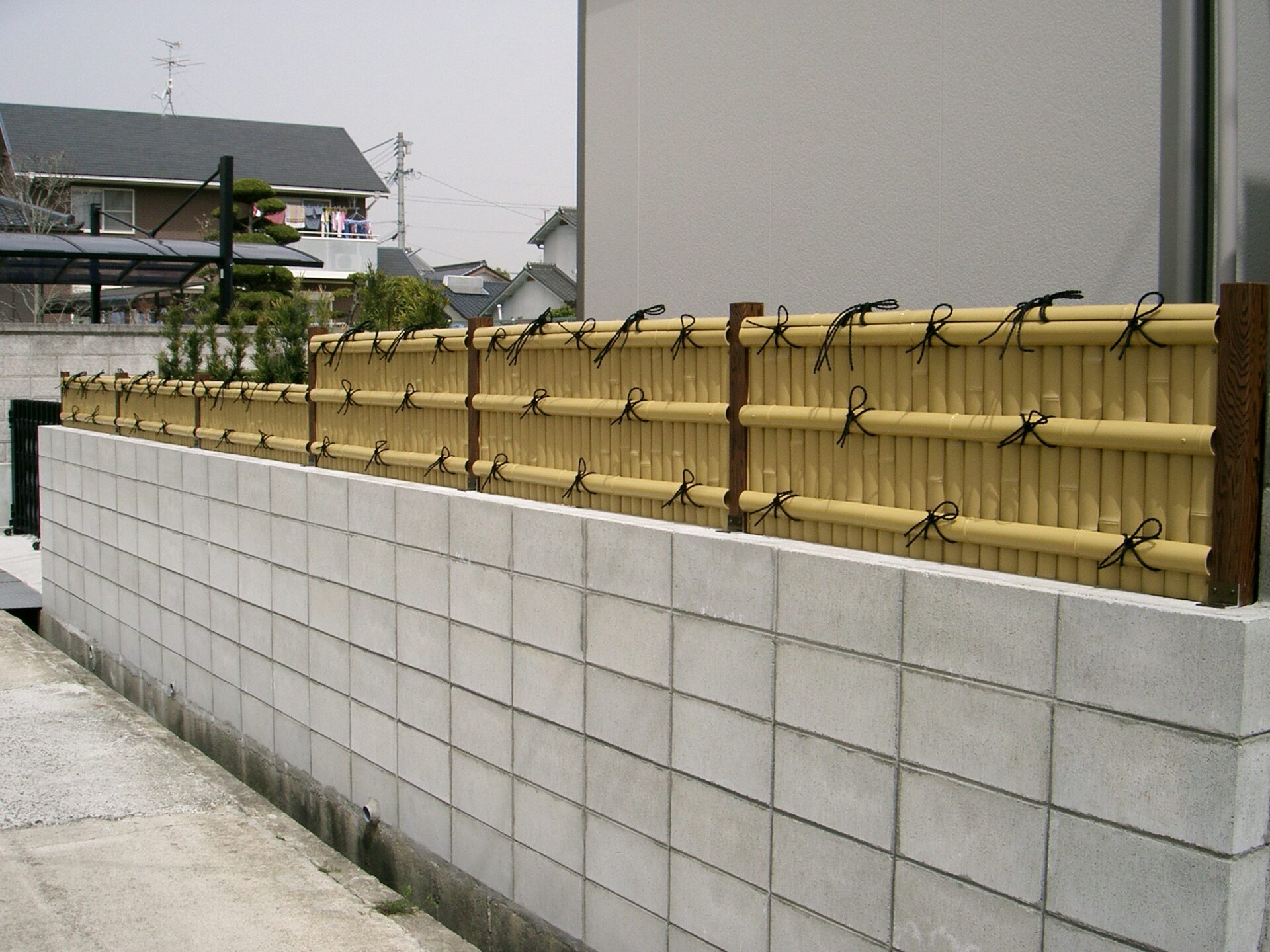 ブロックの上に目かくし 人工竹垣フェンス 赤磐市K様岡山で建材・エクステリアの事なら三井商会へ。