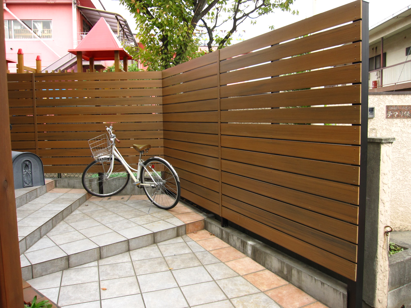 No.189既存ブロック塀を隠し、明るいムード造りのための人工木ルーバー設置目隠しフェンス・ウッドデッキ専門店のエコウッド。