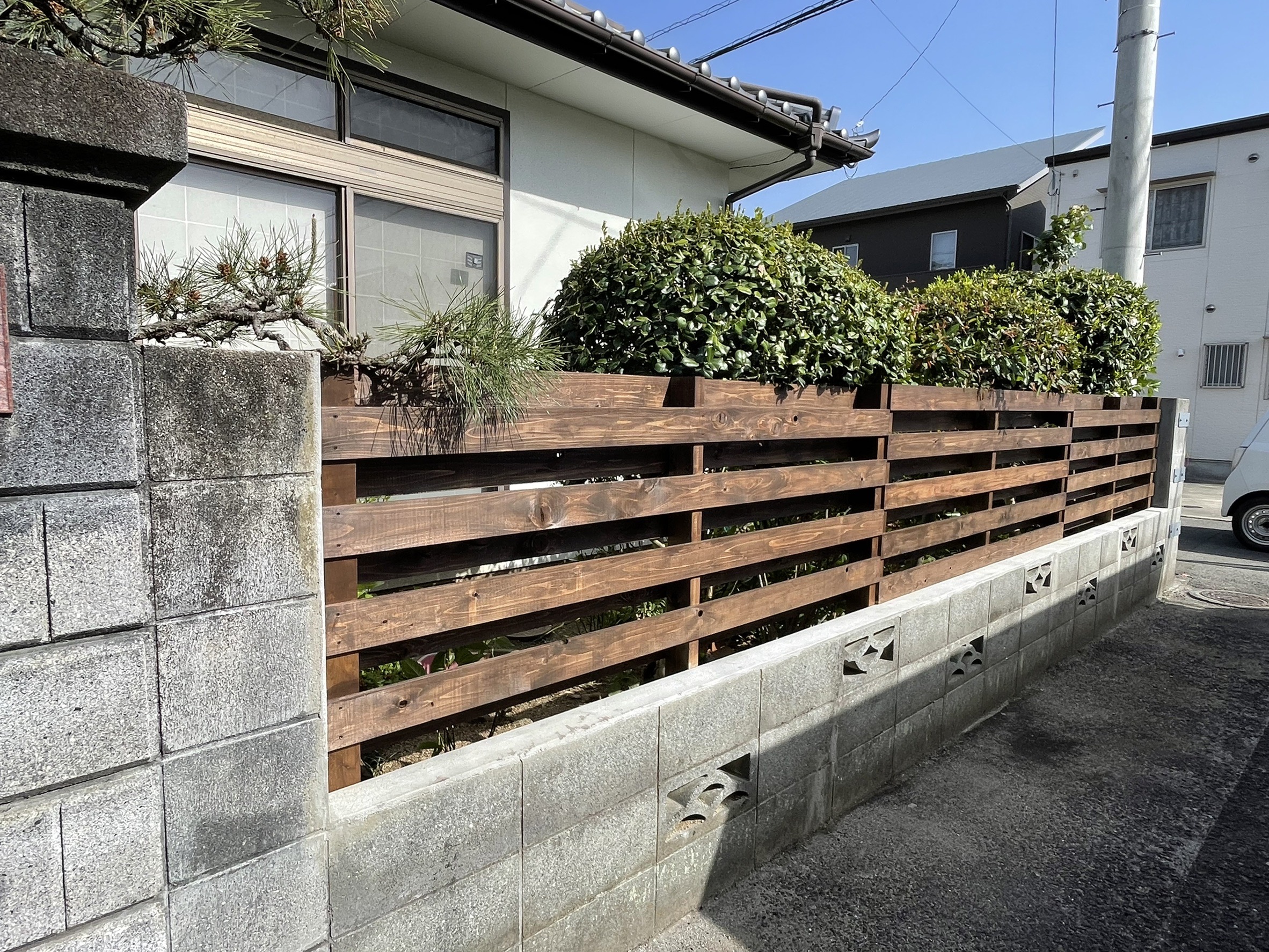 施工事例心和園の施工事例古いブロック塀を隠すために、「ウッドフェンス」を施工しました!株式会社心和園。