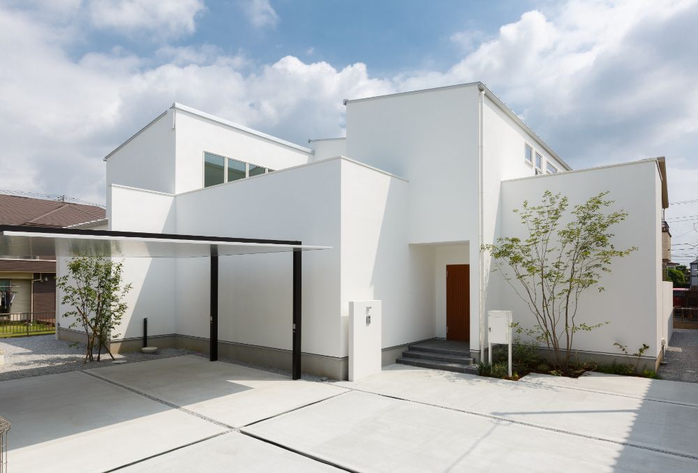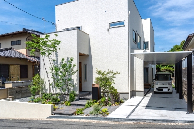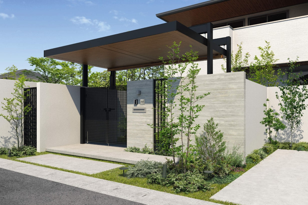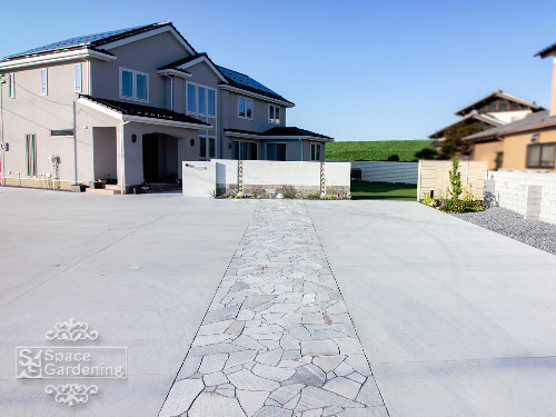 シンプルでおしゃれな外構デザイン事例玄関&駐車場の作り方ミモザガーデン。