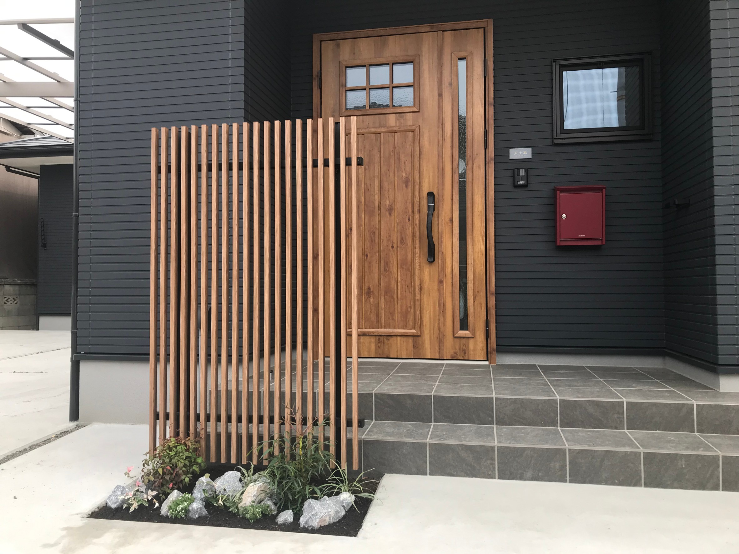 こだわりの玄関アプローチ│セミクローズ外構群馬高崎おしゃれなエクステリア外構・庭リフォームグロウスガーデン。