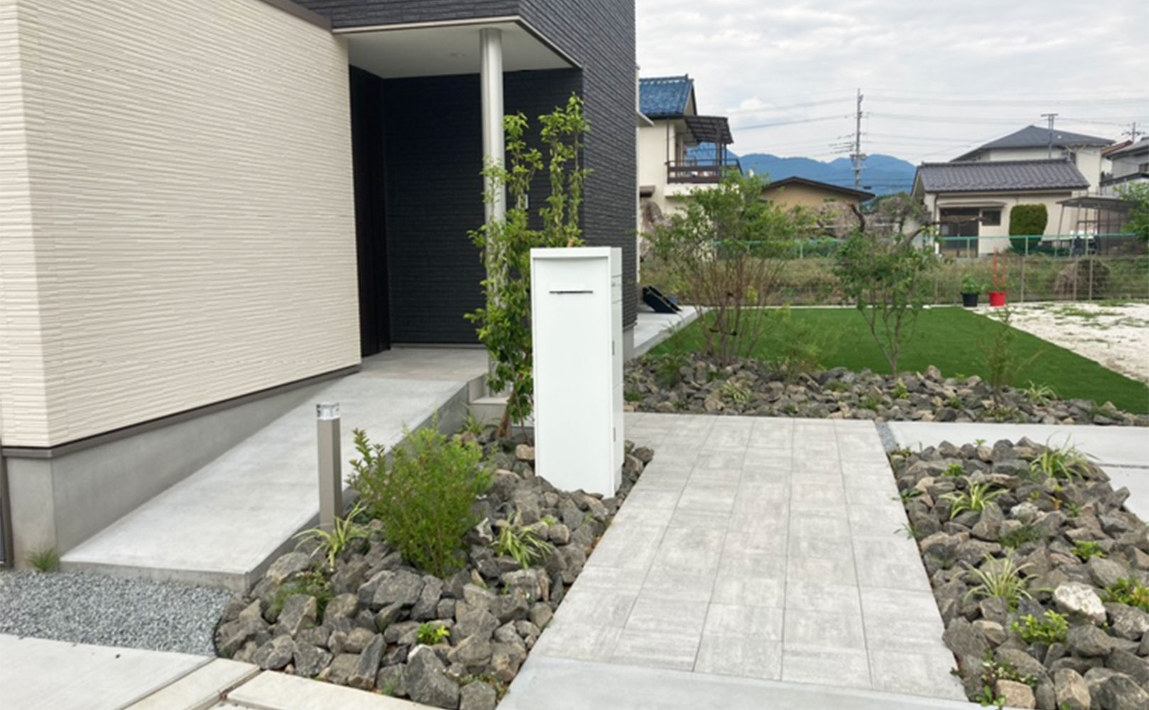 玄関のアプローチをおしゃれにしたい!門柱や植物を入れてモダンに決めよう - PREX GARDENプレックスガーデン松本市・塩尻市・安曇野市のお庭・エクステリア・外構工事会社。