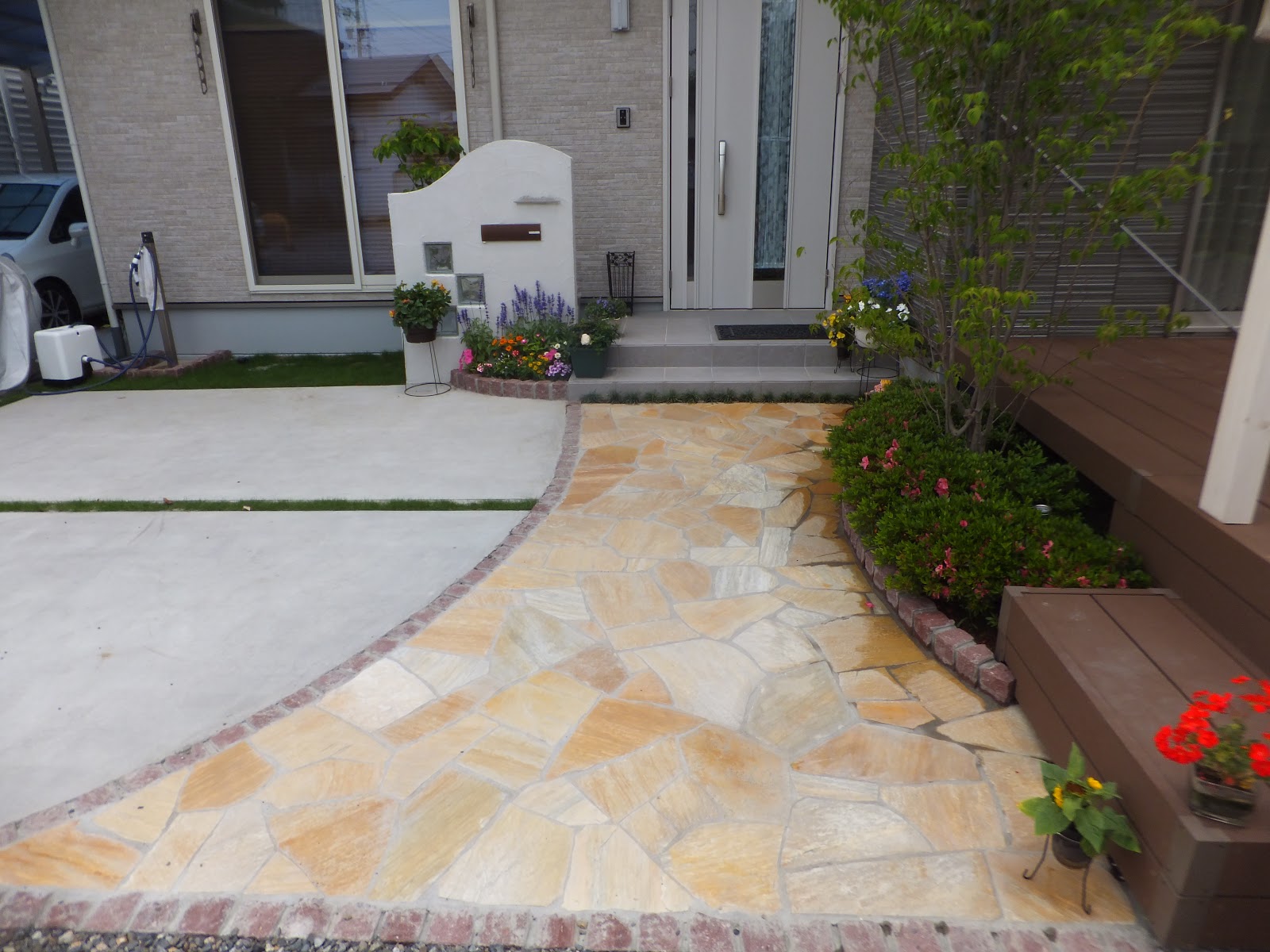 アプローチ 舗装材 アプローチから玄関ポーチまで自然につながるコーディネートのご紹介久保田セメント工業株式会社。