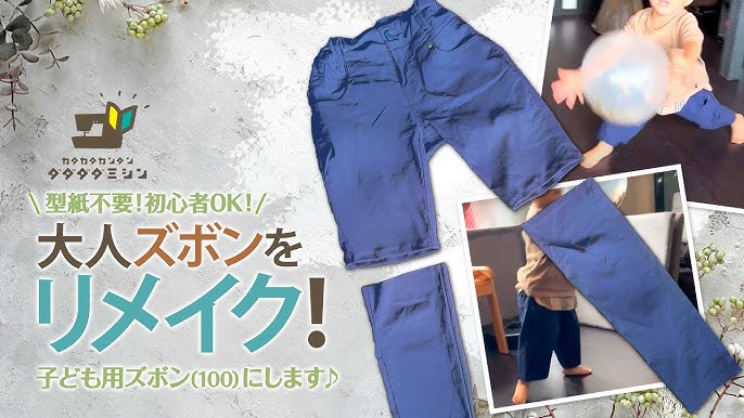 切らずに出来るサイズダウン子ども服ズボン110→90に♡ユニクロリメイクリメイーナ。