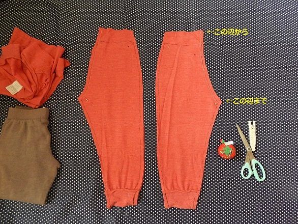 大人服を子供服にリメイク!型紙いらず!長ズボン・レギンスの作り方。