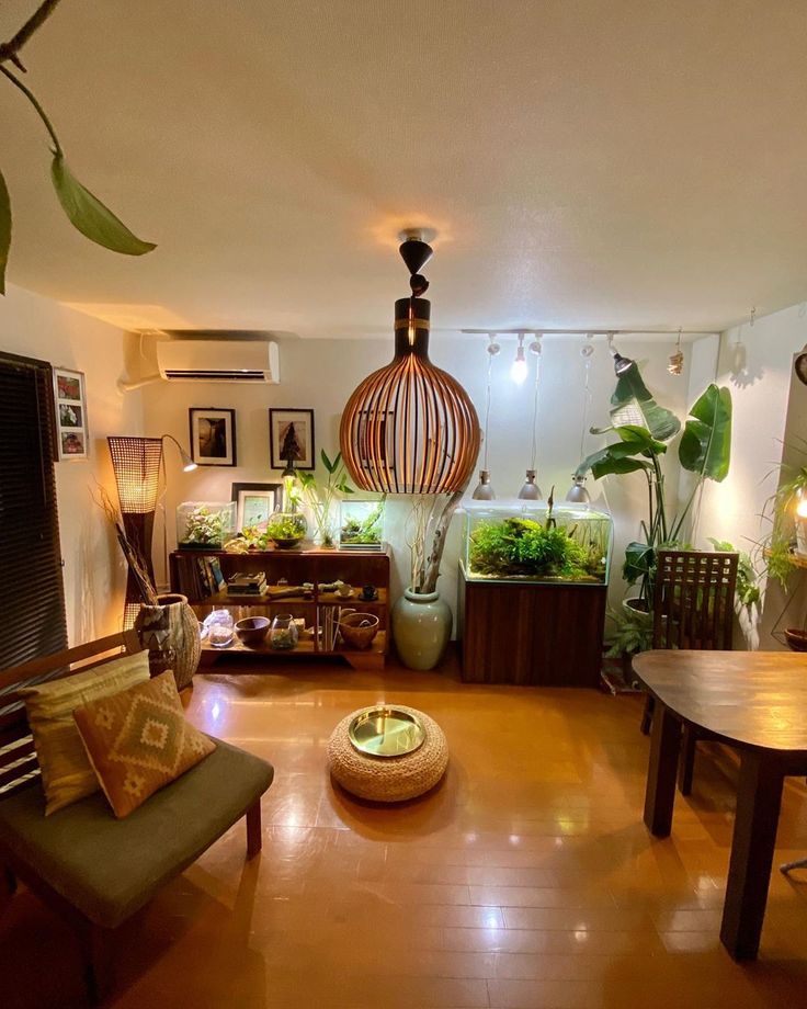 まるで「森の中のおしゃれカフェ」!味わいある家具、観葉植物、水槽が空間のアクセントに 赤ちゃんのいる家のインテリアBaby-mo ベビモ。