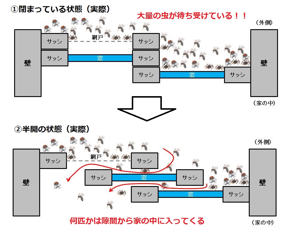 引き違い窓の隙間から侵入する虫がヤバい!原因と効果的な防止策を解説 - 亀岡市の不動産攻略ブログ。