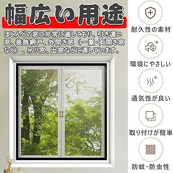 Amazon簡易網戸 窓 網戸キット 虫除けネット 防虫ネット 網戸カーテン 小窓用網戸 蚊防ぐ 昆虫侵入防止 虫除けカーテン 網戸 窓用 後付け 網戸 取り付け簡単 通気性 軽量 網戸張り替え お手入れ簡単 DIY網戸ネット アルミ製・鉄製・木製などの窓枠に対応可能ブラック2。
