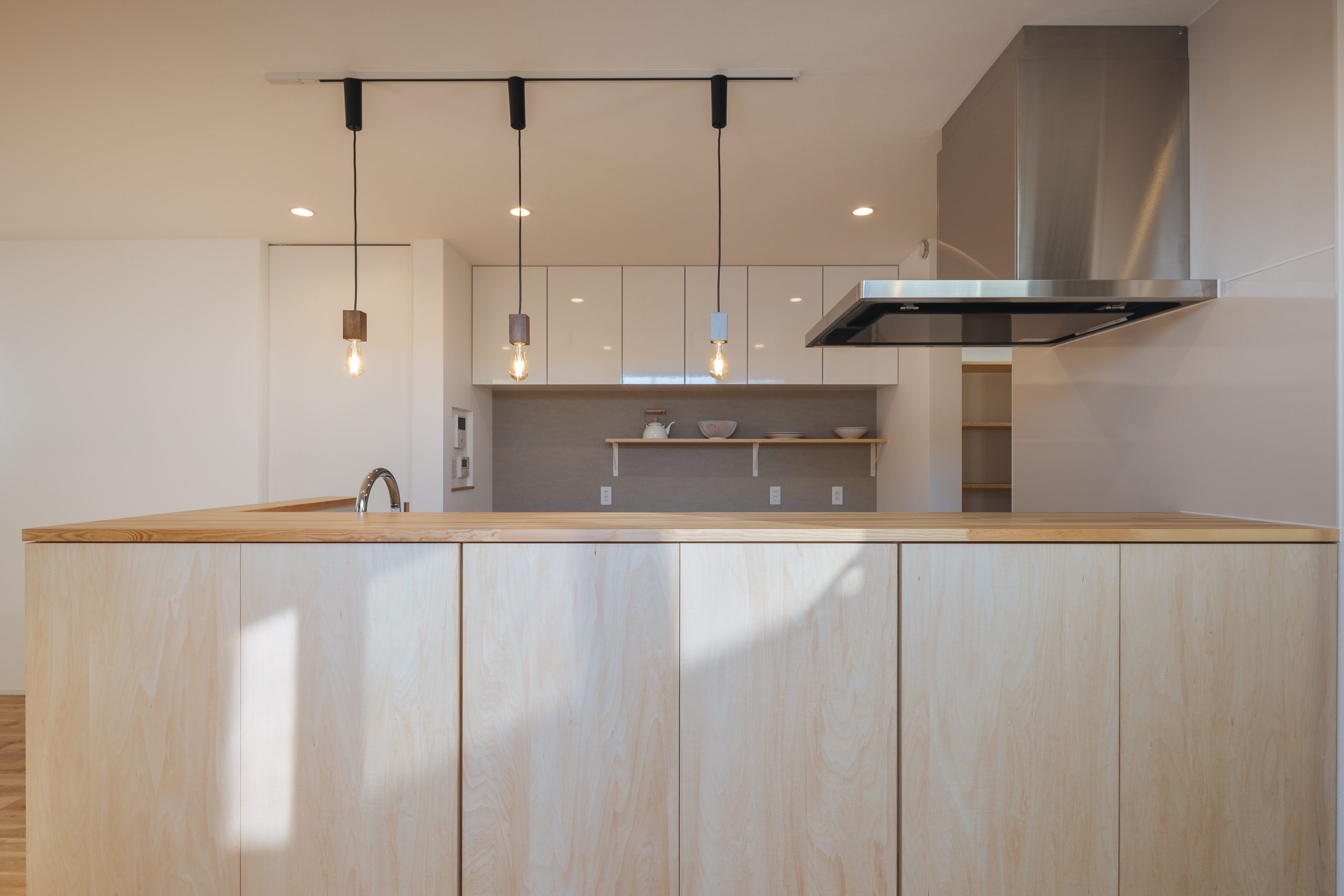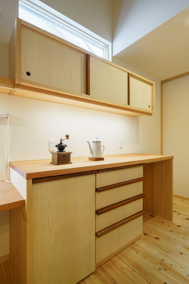 タモ材の造作キッチンカウンター厚木市の優建築工房の住まいギャラリ。