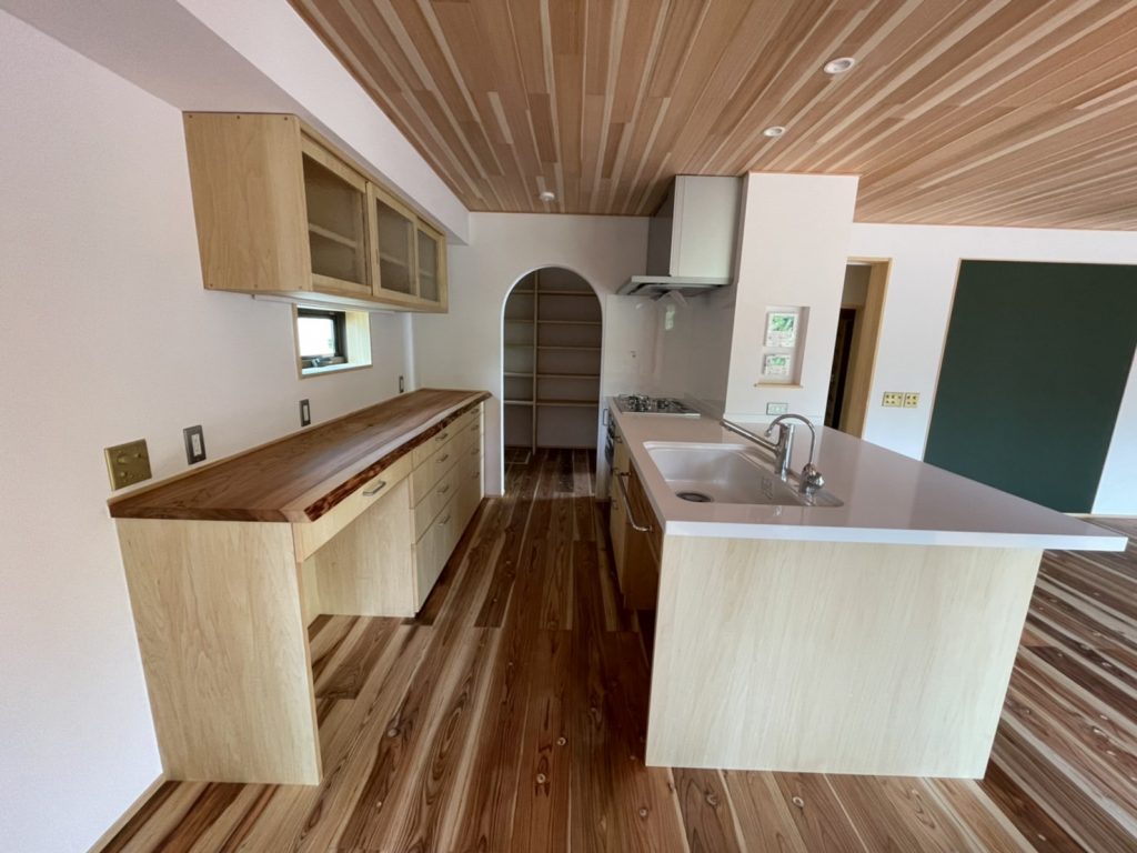 木の造作キッチンカウンター厚木市の優建築工房の住まいギャラリ。
