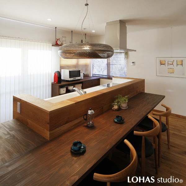 キッチンカウンター造作 リアルパネル注文住宅・建て替え・新築のLOHASTA home ロハスタホーム夏涼しく冬暖かい高断熱・高気密住宅。
