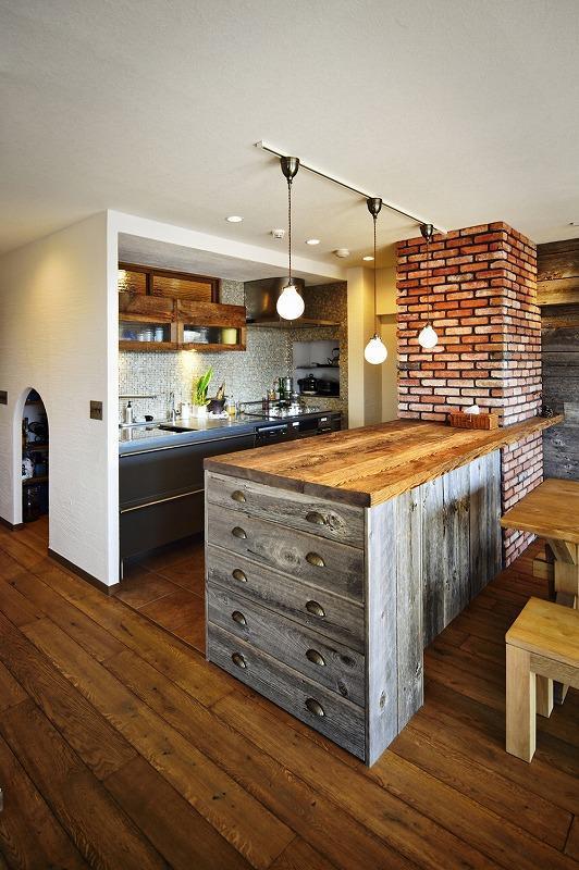 造作キッチンカウンター 遊び心のある大人のシャビーな空間- キッチン事例SUVACO スバコ。