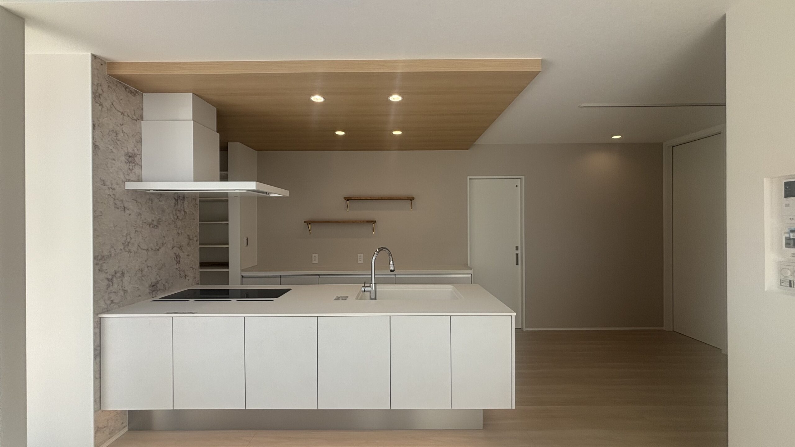 キッチンも「インテリアの一部」に。オススメの「下がり天井」マンションリフォームのサンリフォーム 大阪・神戸・西宮・吹田・京都・横浜・東京。