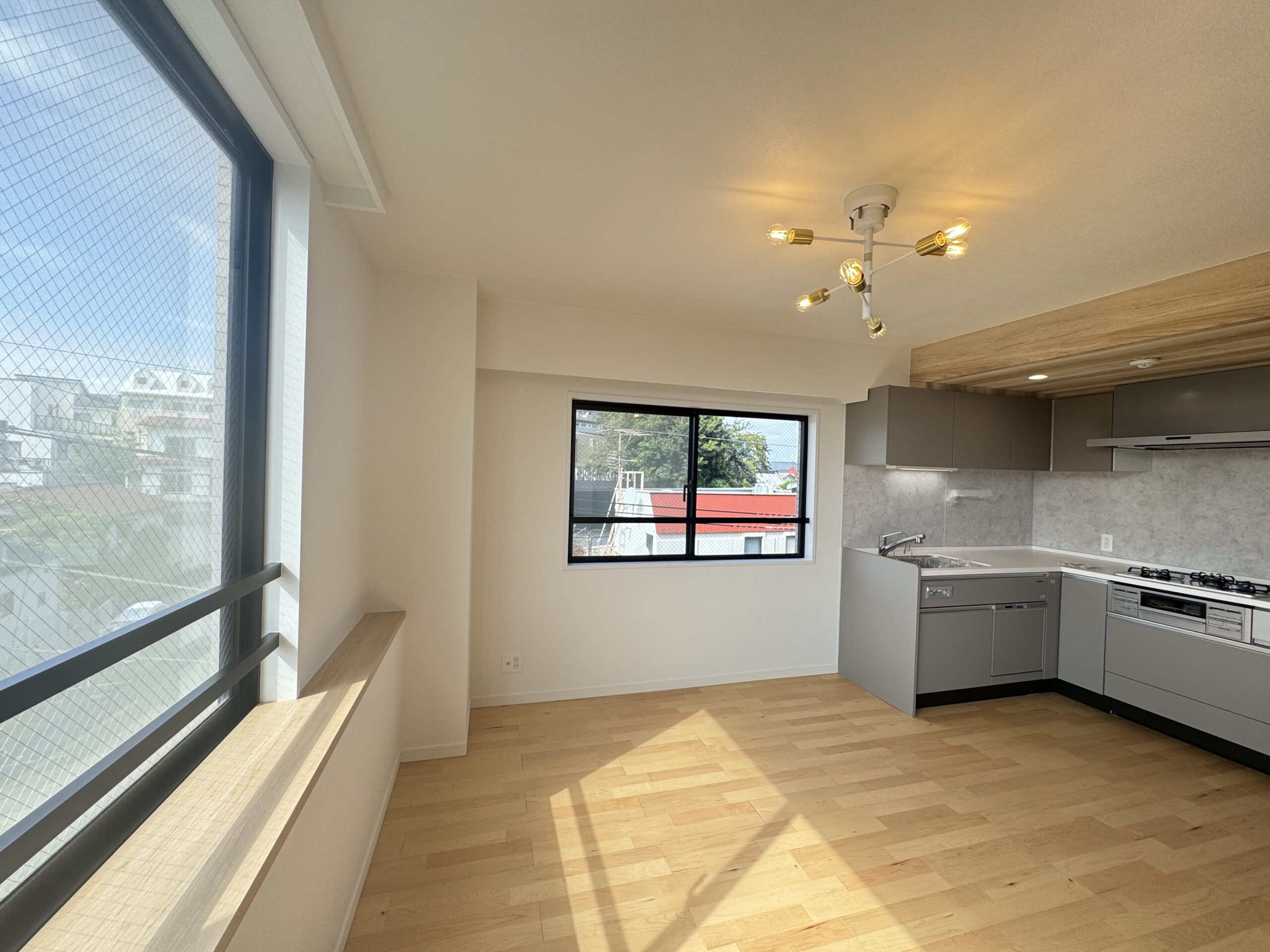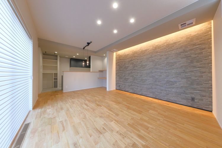 やさしいグレージュで統一した内装に、木目の下がり天井がアクセント。 - 株式会社光立不動産の売買・管理・リフォーム・注文建築など。