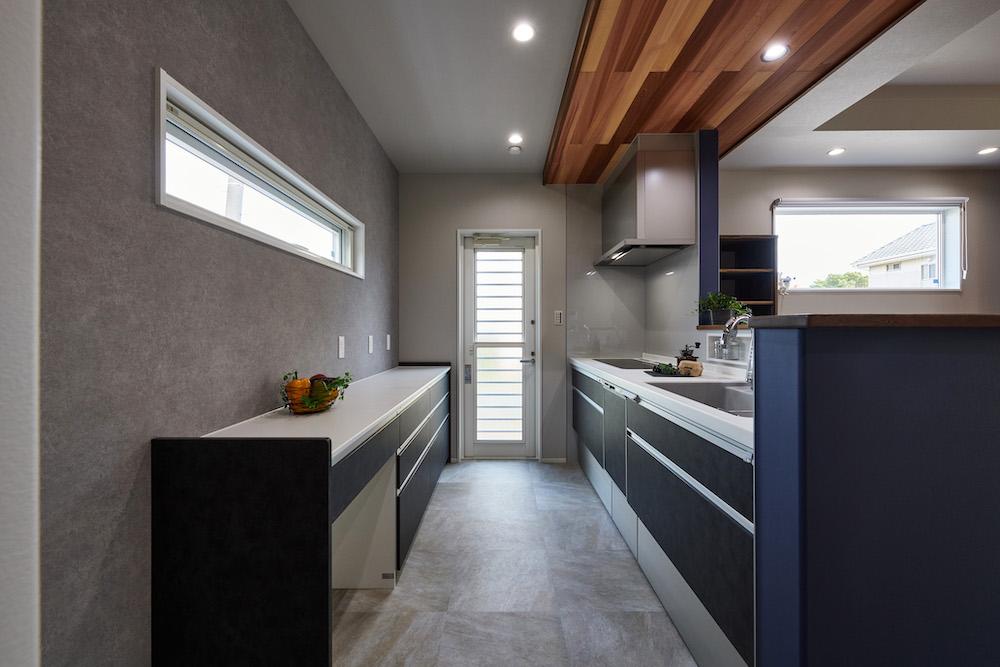 ダークグレーのキッチンと木目を活かした下がり天井 がおしゃれなキッチンのある家その他の施工事例千葉県松戸市で注文住宅・新築分譲住宅・土地を探すならエドケンハウス。