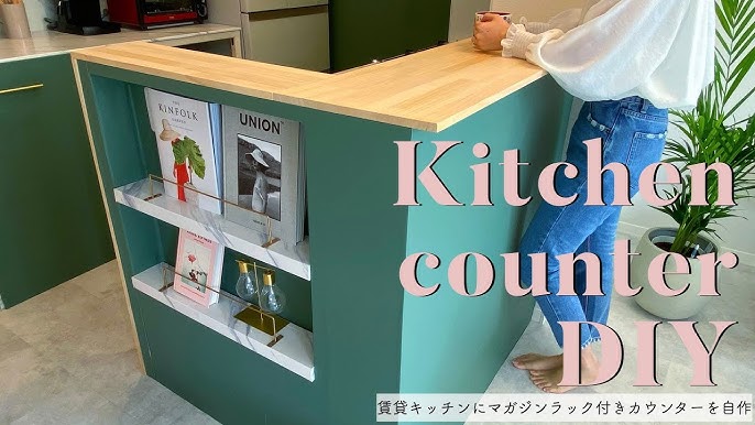 キッチン diy 賃貸アパートのキッチンにマガジンラック付きカウンターを自作! kitchen counter diy。
