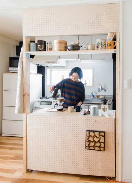 賃貸インテリア 壁付けキッチンを快適に!目隠しカウンター設置いつものくらし時々山。