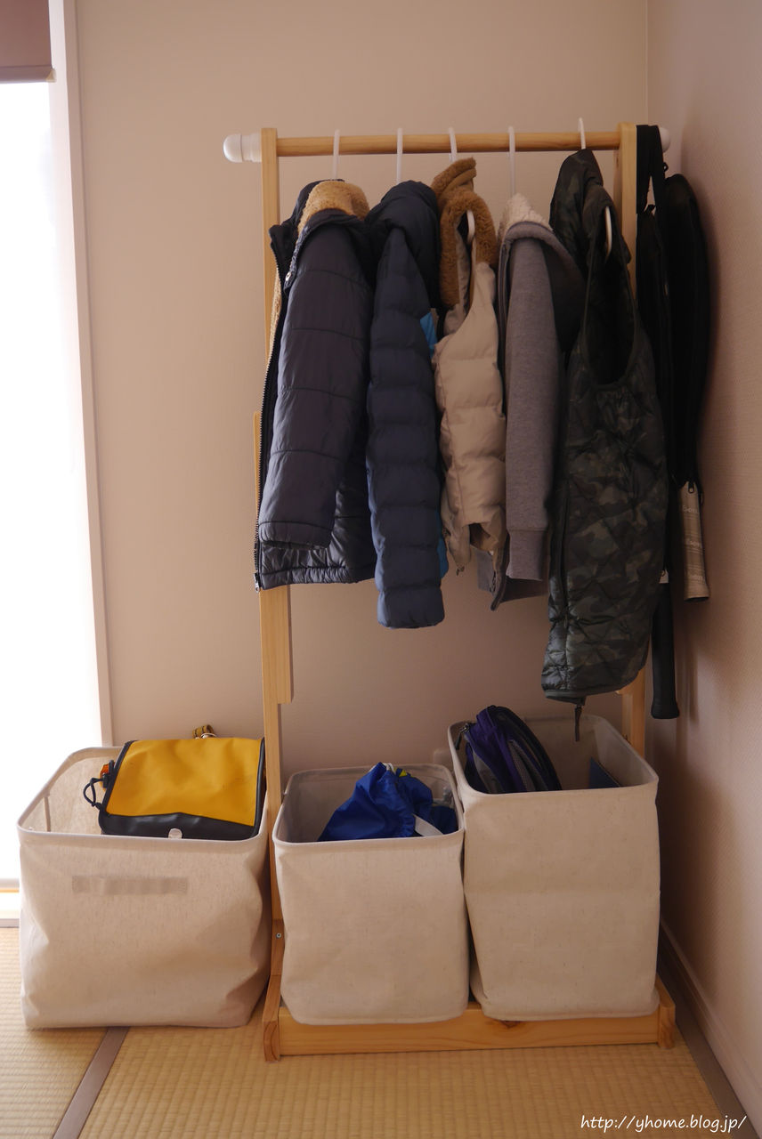 和室にハンガーラックをおく*ニトリの高さ調節できるラック : Y home。