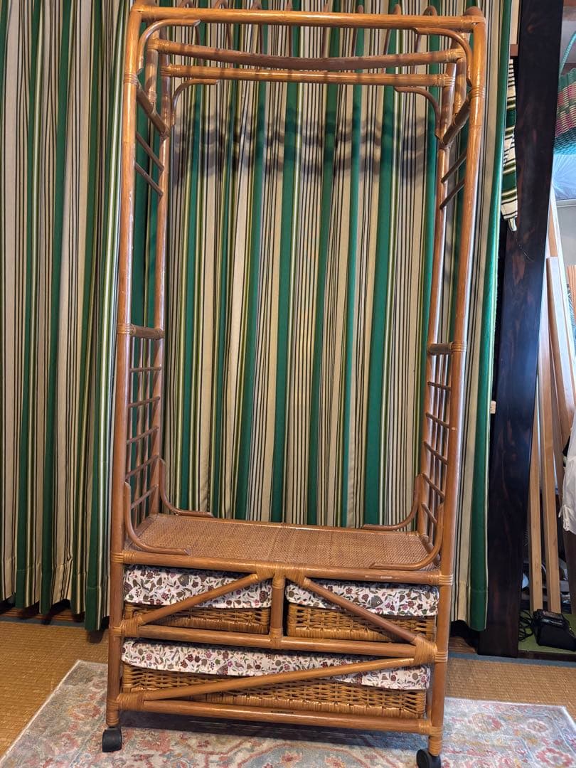 ラタンハンガーラック 籐のハンガーラック 和室インテリア レトロ家具。